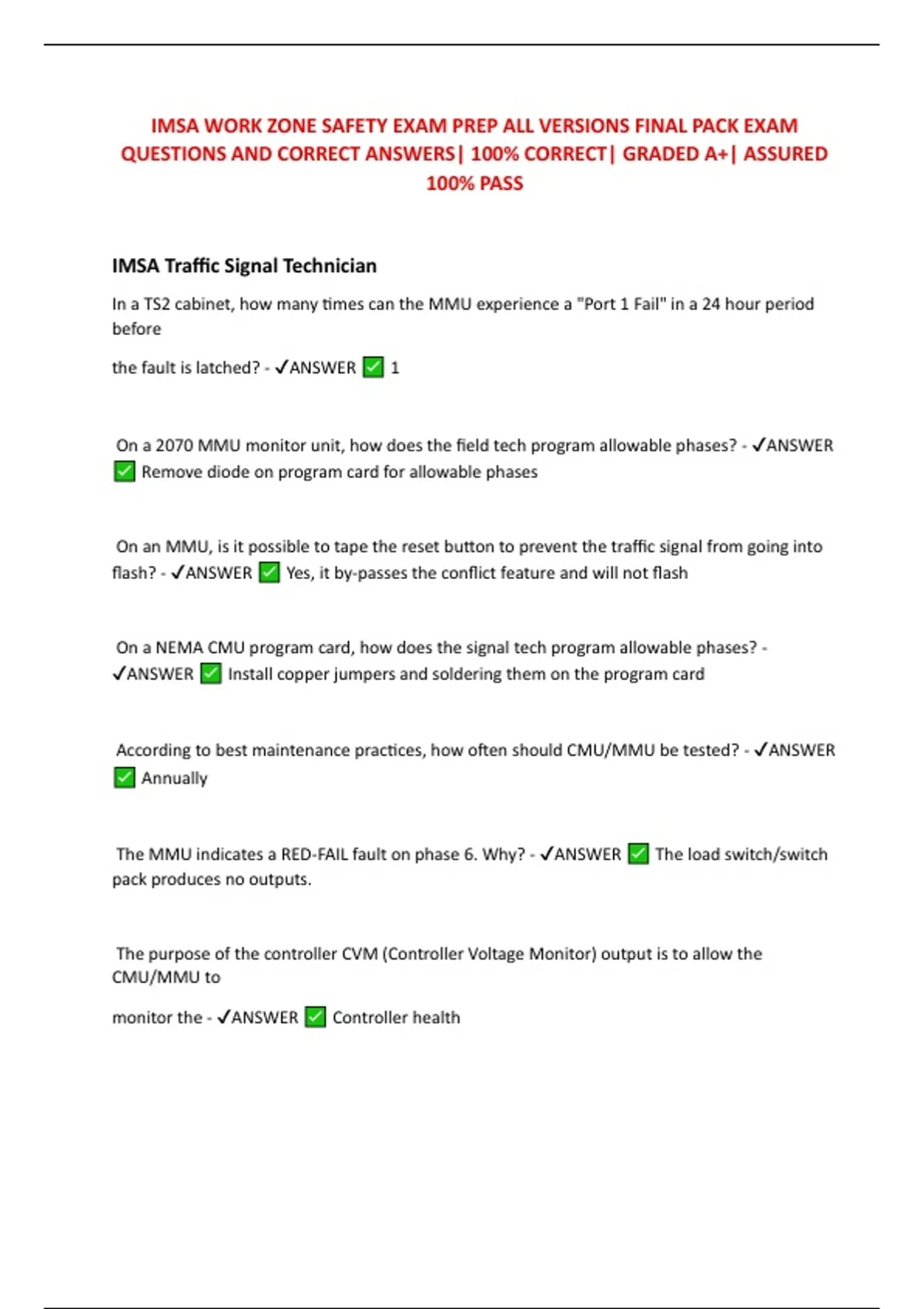IMSA WORK ZONE SAFETY EXAM PREP ALL VERSIONS FINAL PACK EXAM
