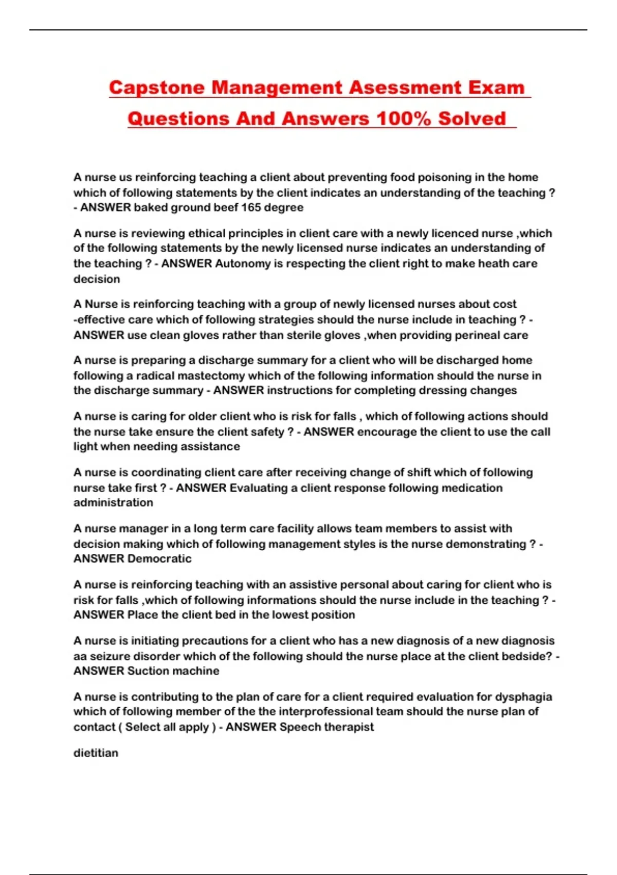 Capstone Management Asessment Exam Questions And Answers 100% Solved ...