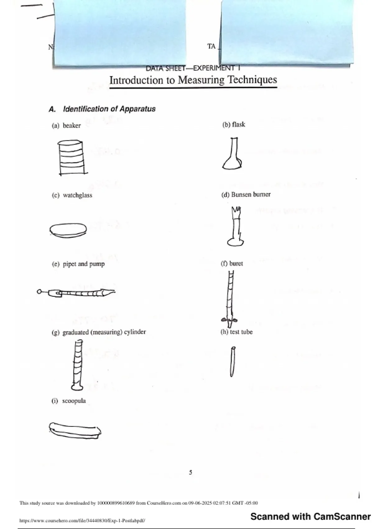 CHEM 1111 Exp 1 Postlab data sheet experiment 1 introduction to measuring techniques