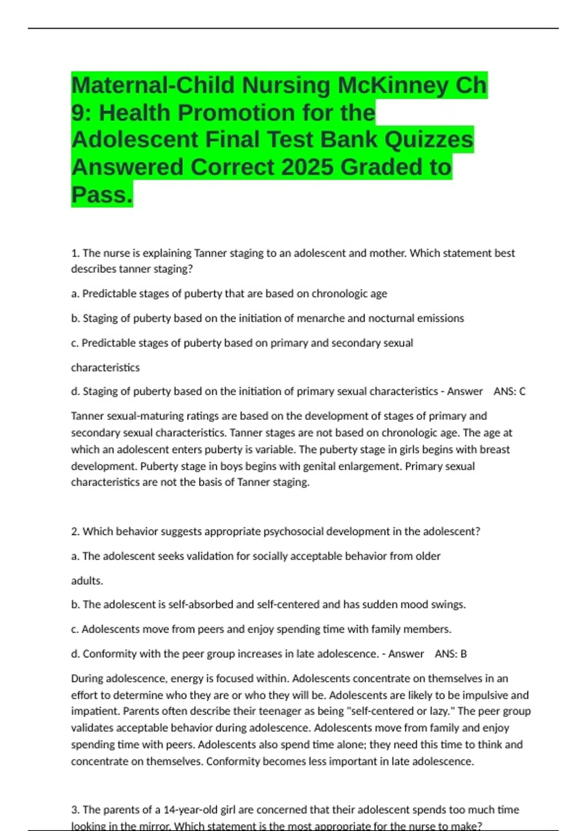 1. The nurse is explaining Tanner staging to an adolescent and mother. Which statement best