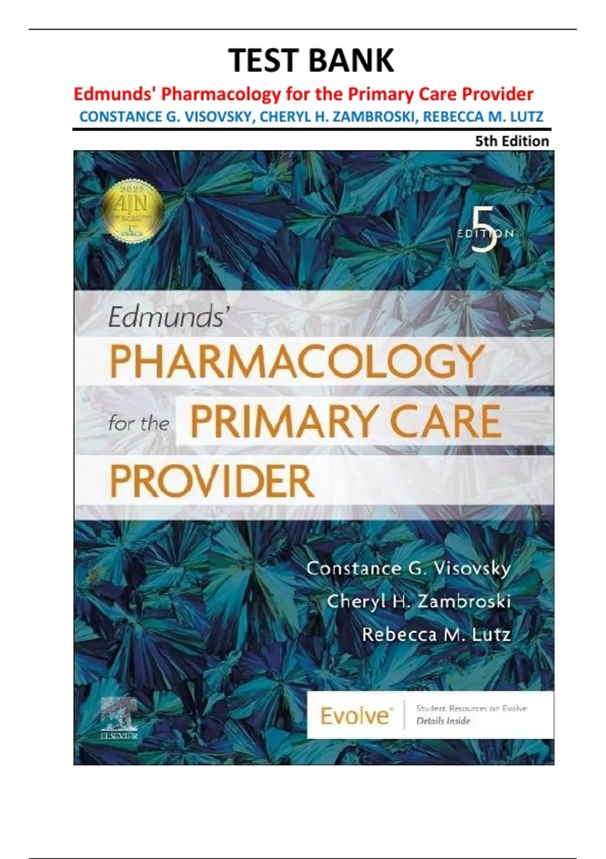 Test Bank for Edmunds' Pharmacology for the Primary Care Provider, 5th Edition by Constance G. Visovsky, Cheryl H. Zambroski, and Rebecca M. Lutz |all chapters covered|