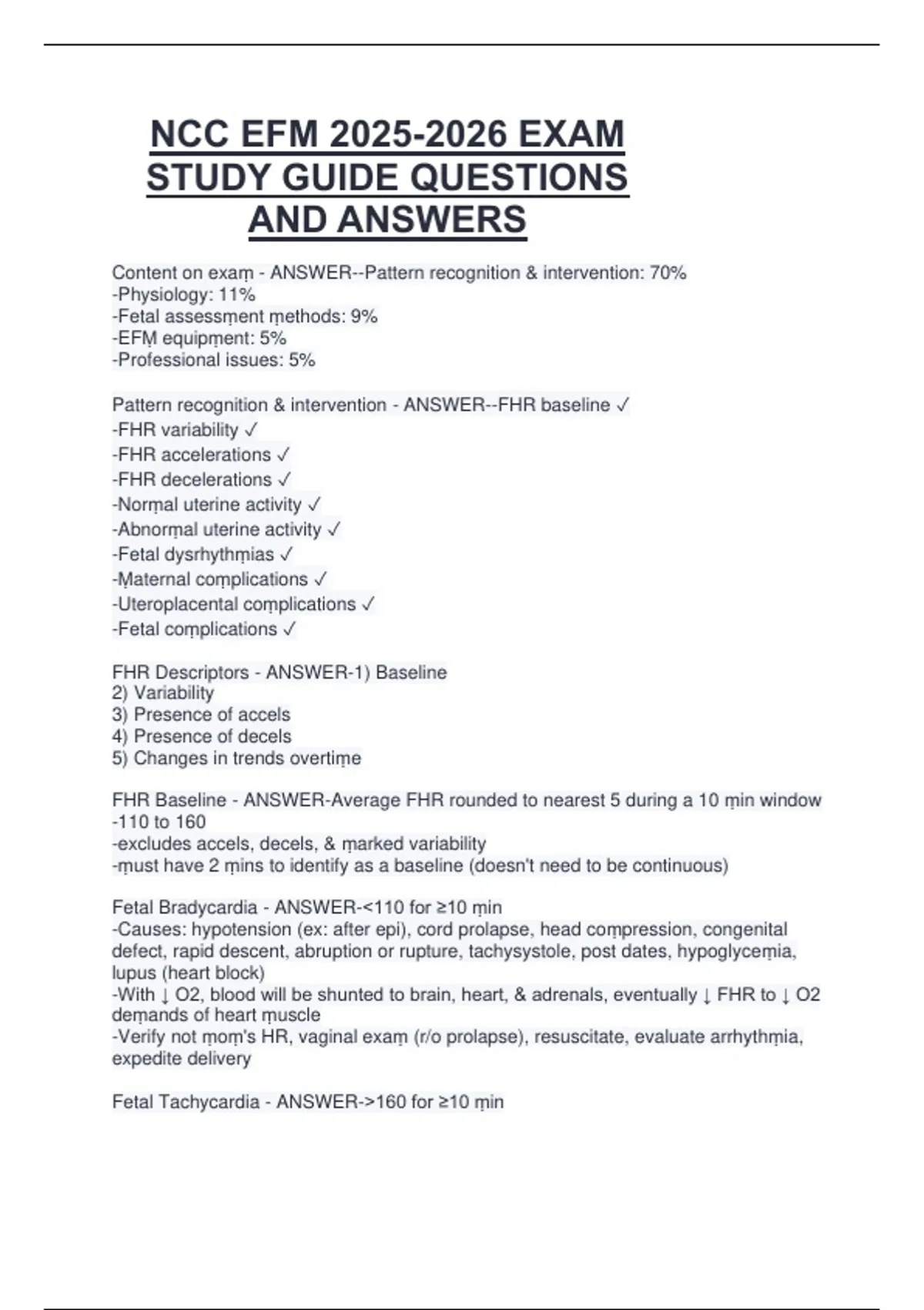 FHR Descriptors - ANSWER-1) Baseline