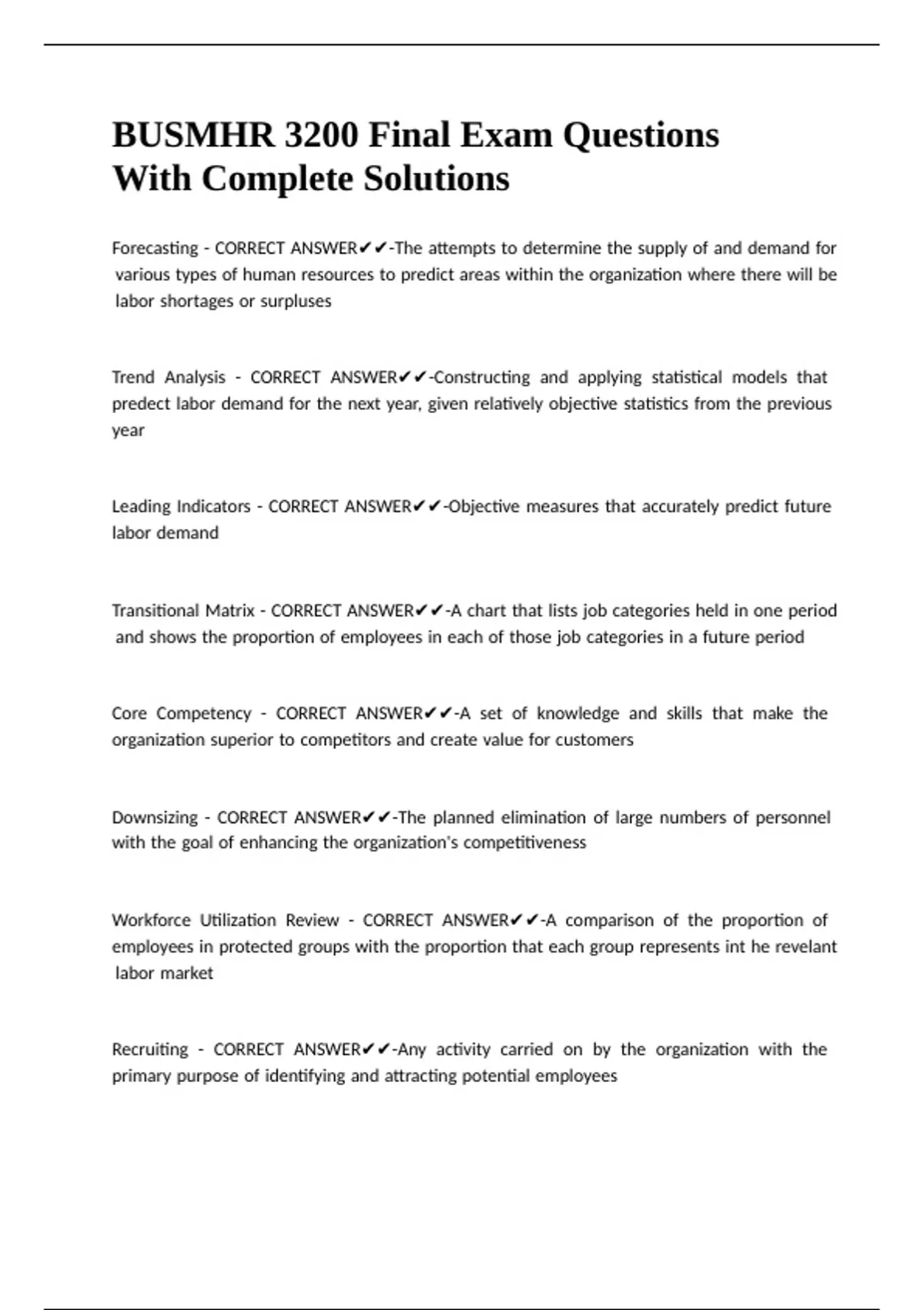 BUSMHR 3200 Final Exam Questions