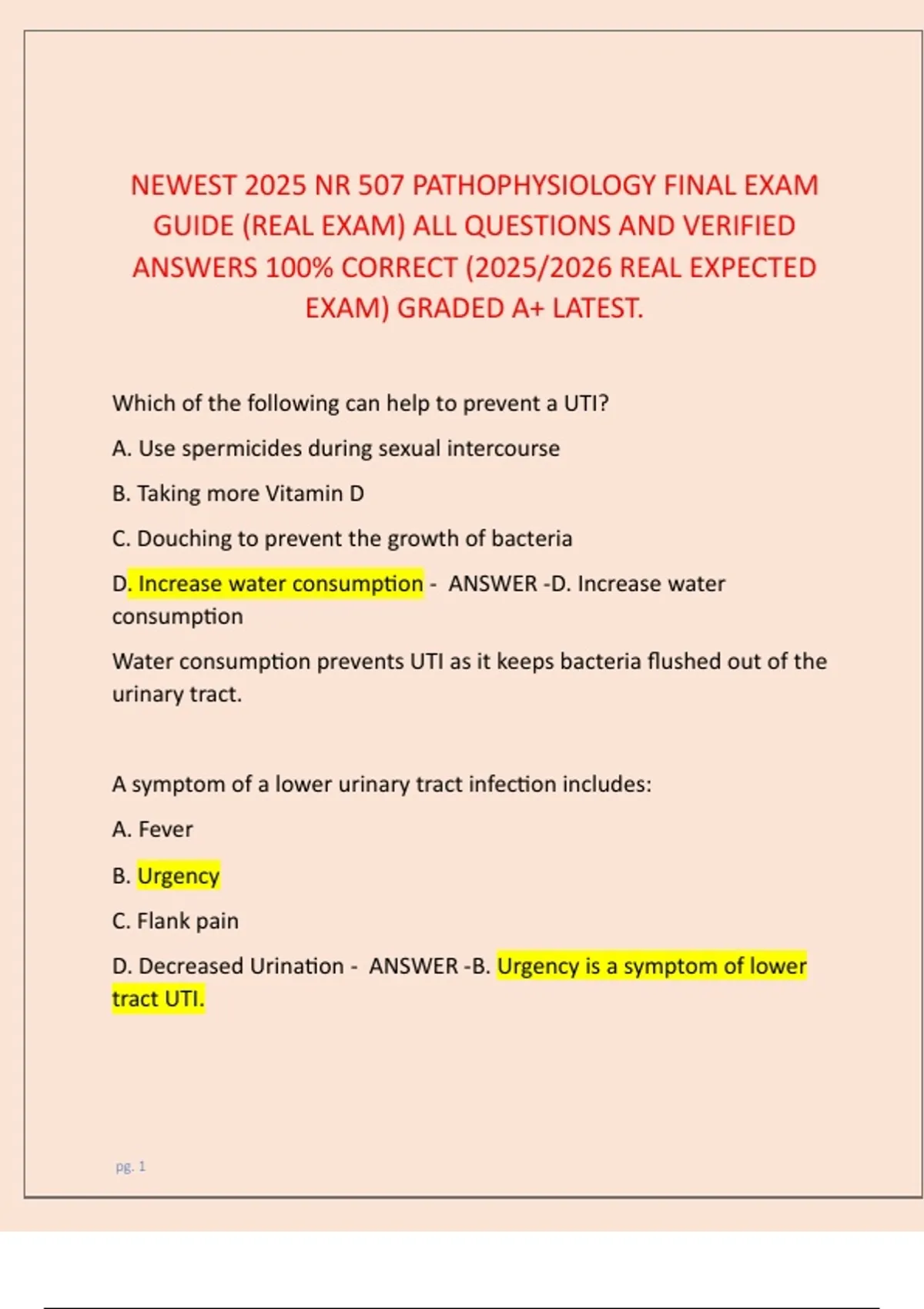 D. Decreased Urination - ANSWER -B. Urgency is a symptom of lower