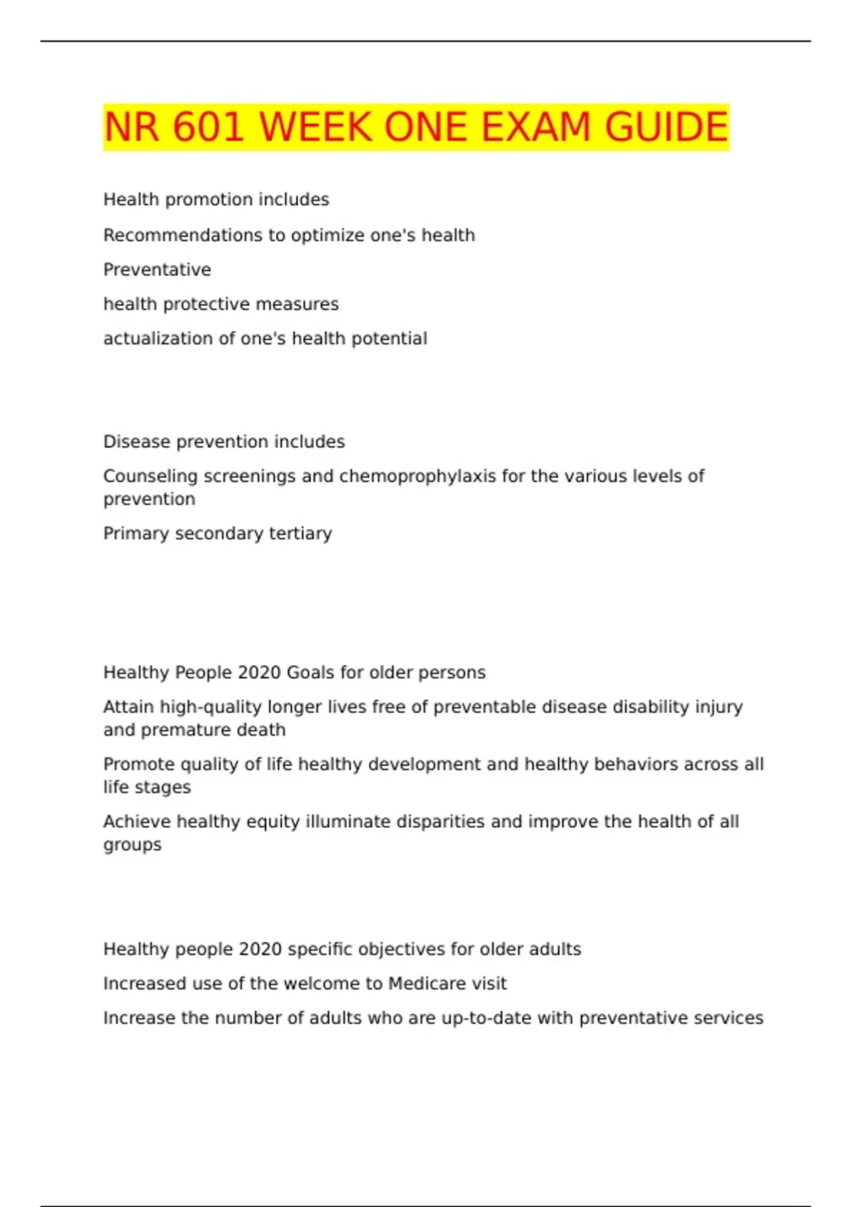 Healthy people 2020 specific objectives for older adults