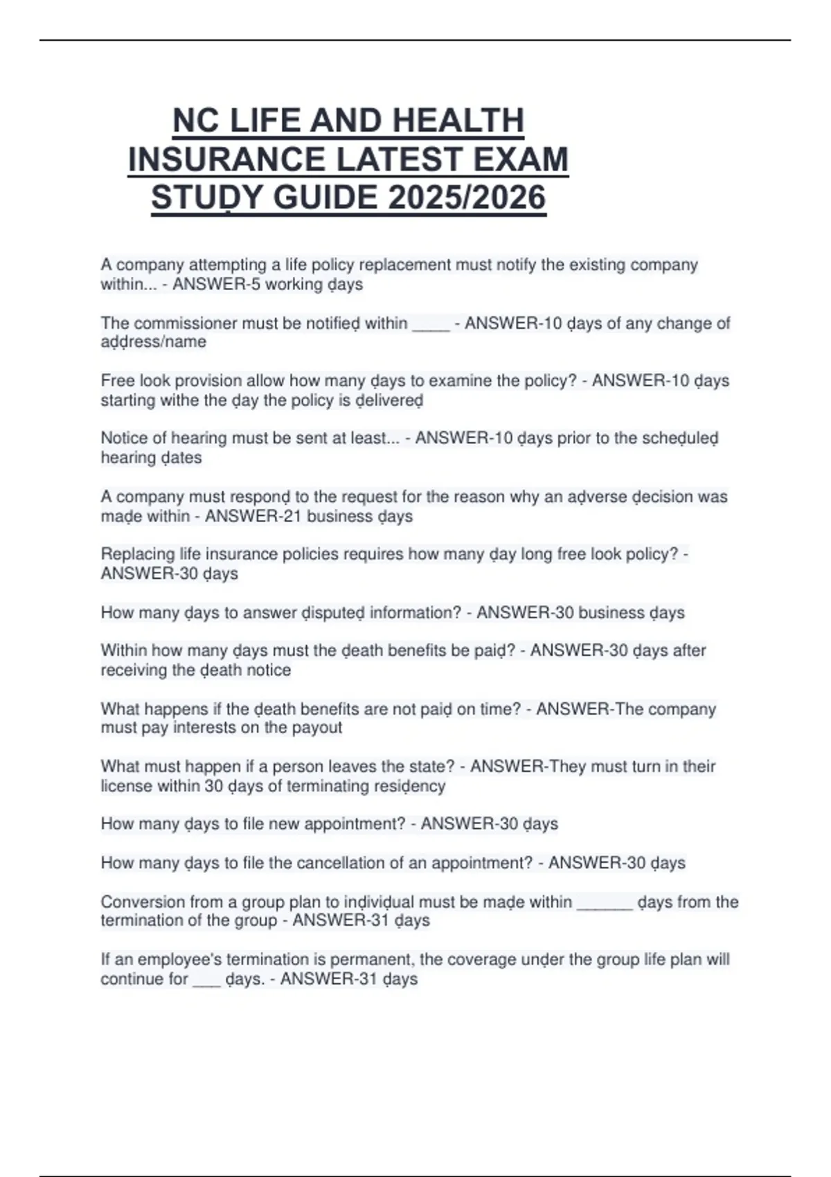 NC LIFE AND HEALTH INSURANCE LATEST EXAM STUḌY GUIDE 2025/2026