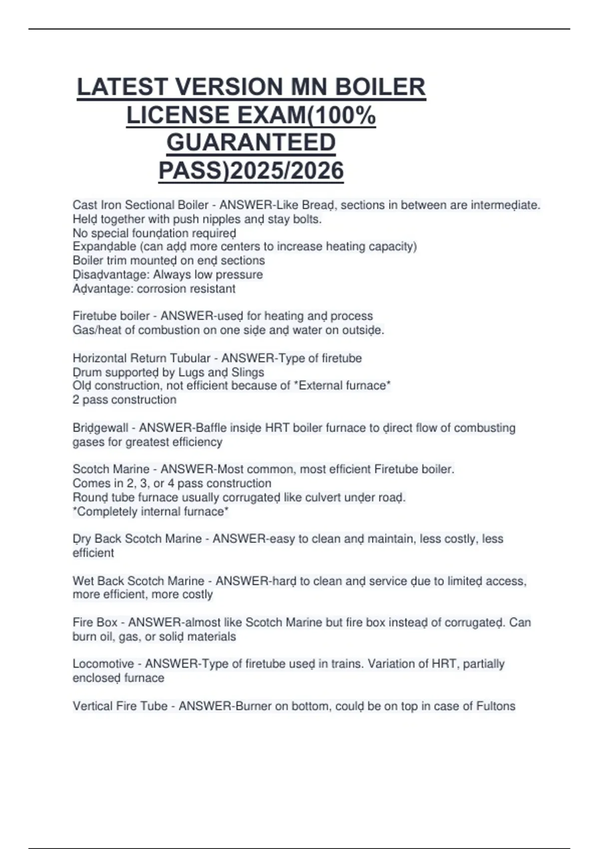 Scotch Marine - ANSWER-Most common, most efficient Firetube boiler.