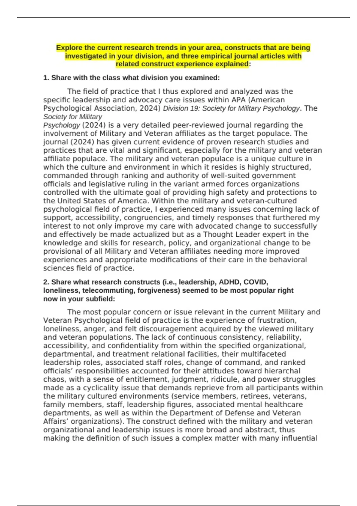 PSYC1301Explore the current research trends in your area, constructs that are being investigated in your division, and three empirical journal articles with related construct experience explained