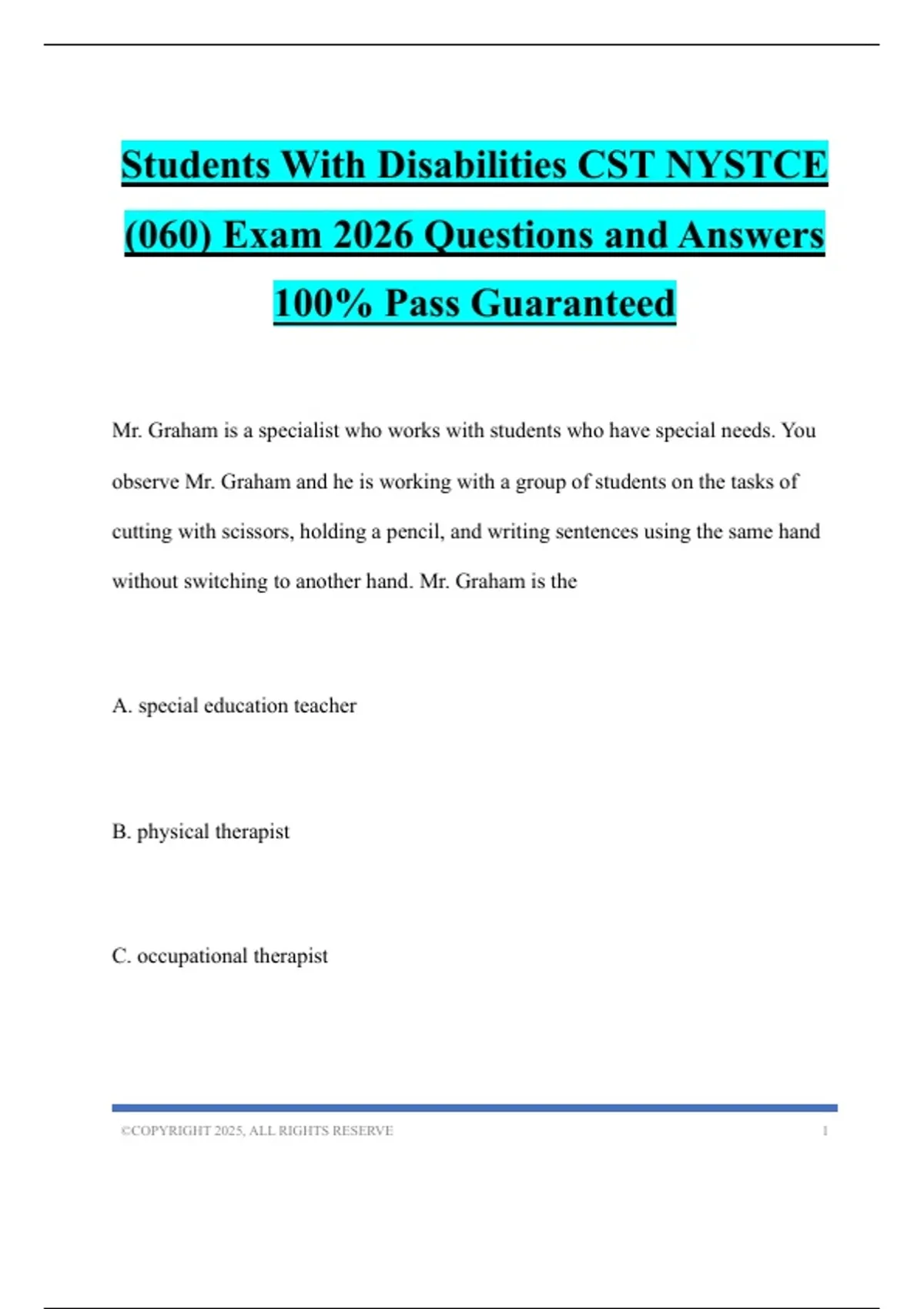 ,D. motor planning specialist - Correct answer-(C) Mr. Graham is the occupational