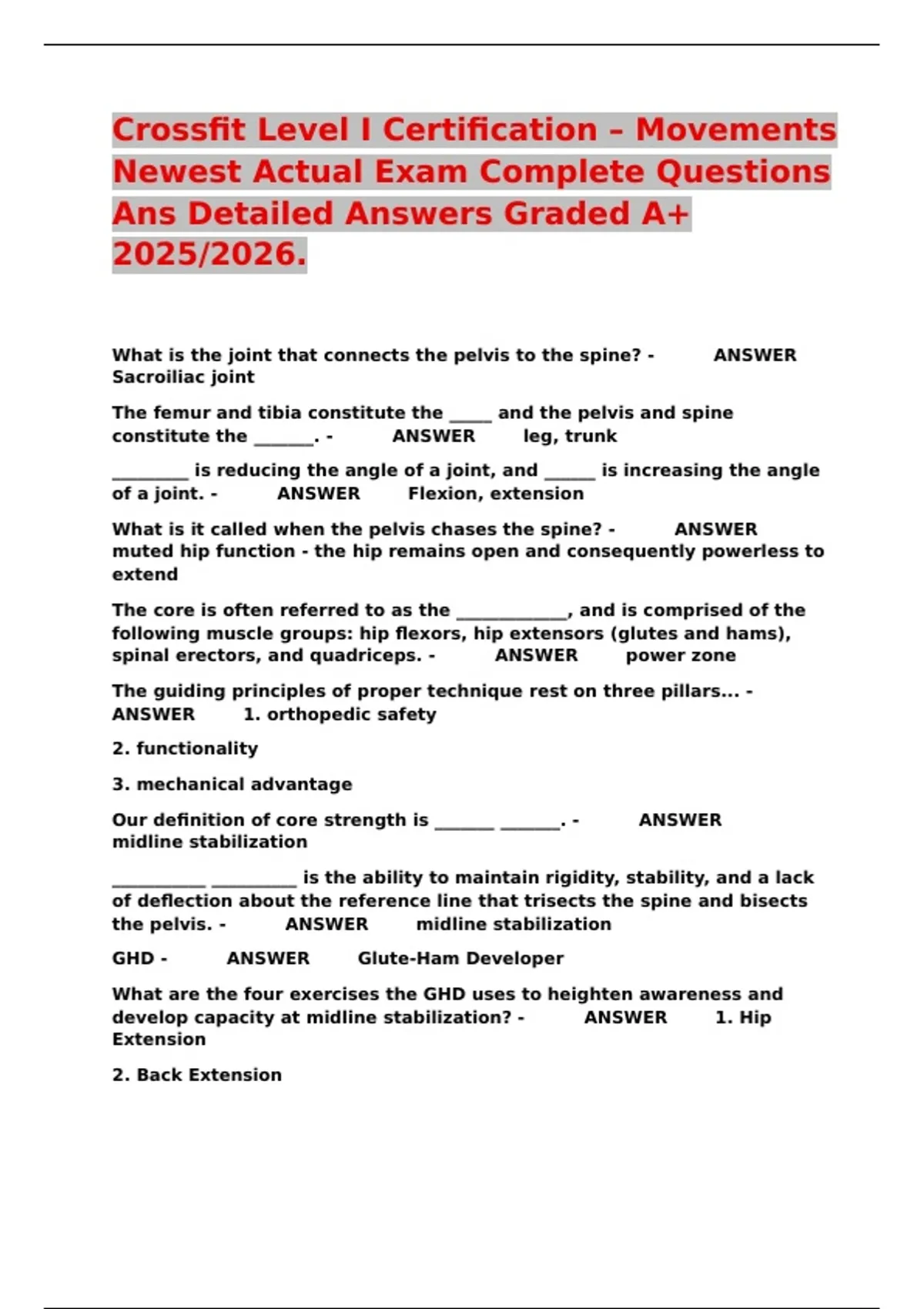 Crossfit Level I Certification – Movements Newest Actual Exam Complete Questions Ans Detailed Answers Graded A+ 2025/2026.