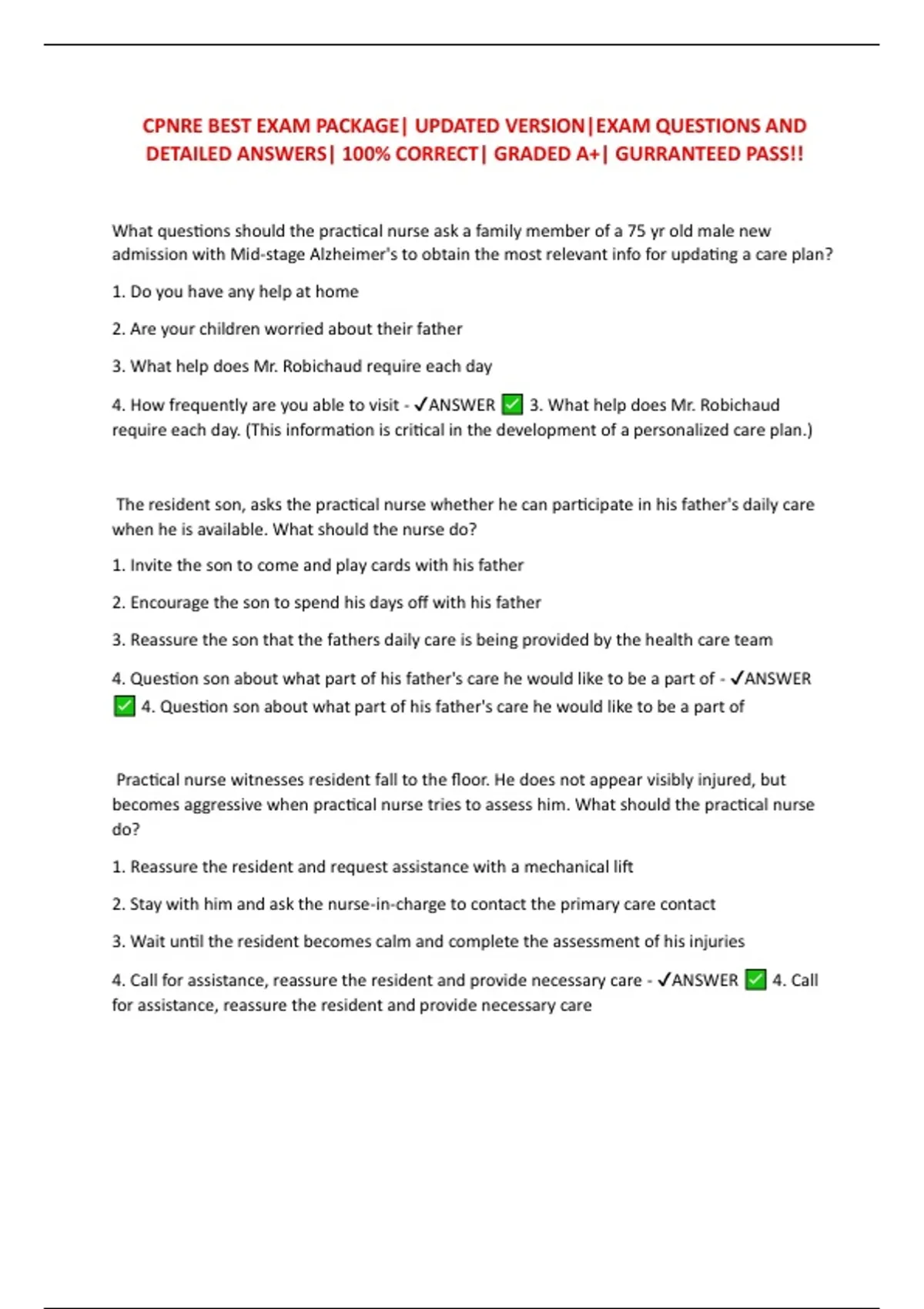 4. Call for assistance, reassure the resident and provide necessary care - ✔ANSWER 4. Call