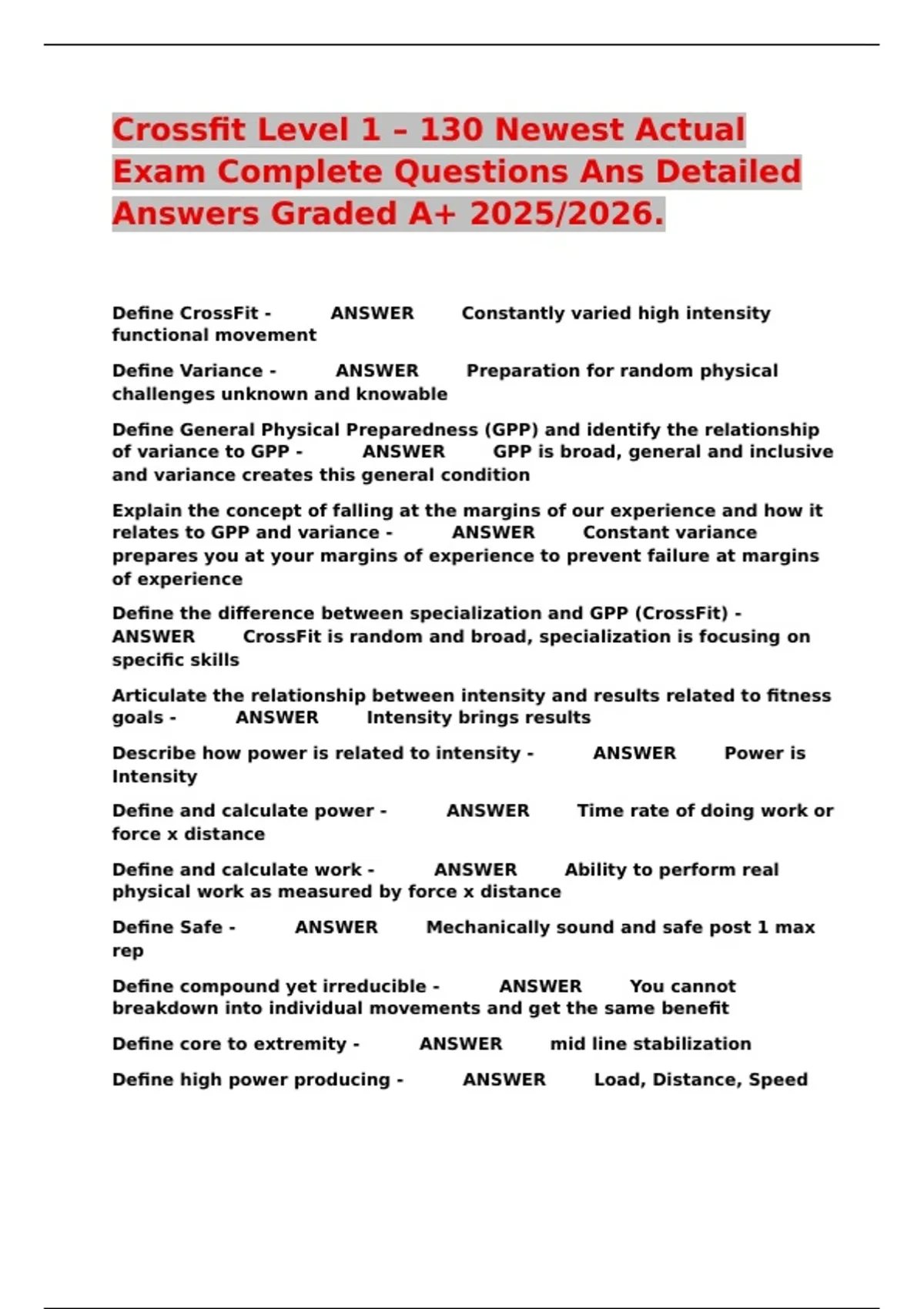 Crossfit Level 1 – 130 Newest Actual