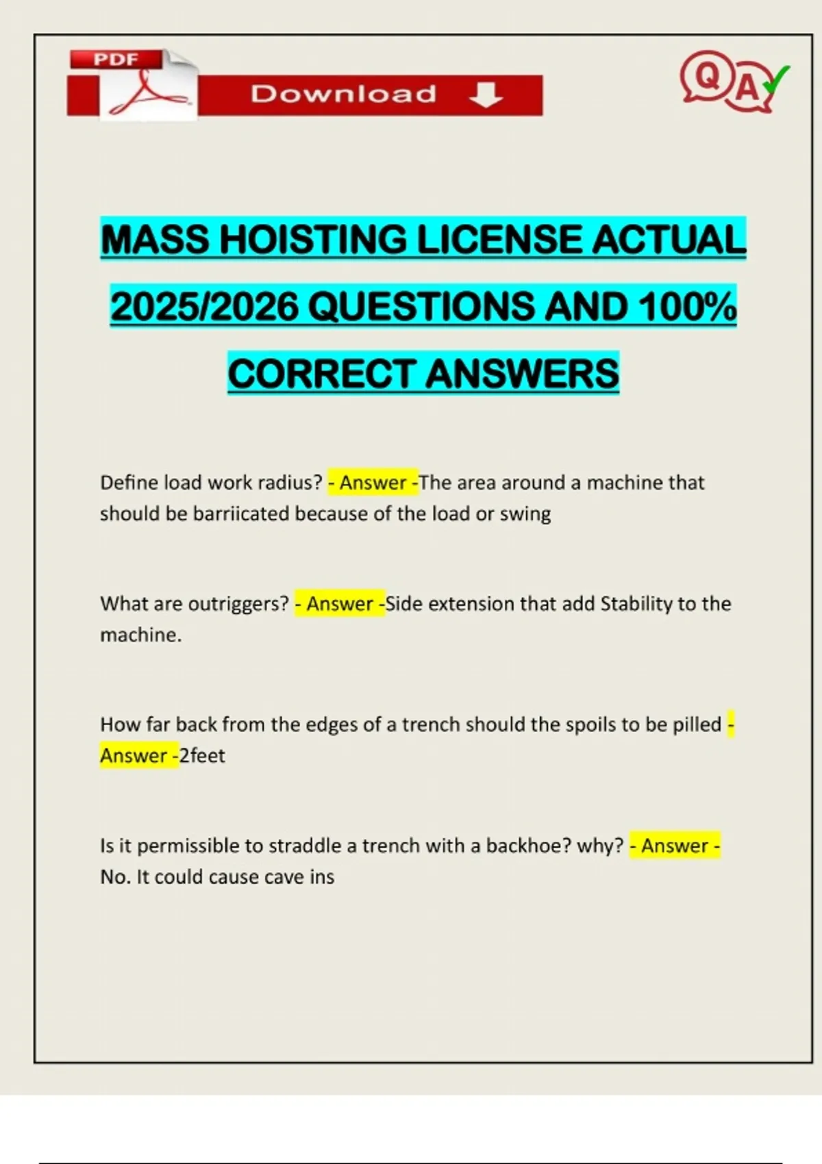 MASS HOISTING LICENSE ACTUAL 2025/2026 QUESTIONS AND 100% CORRECT ANSWERS
