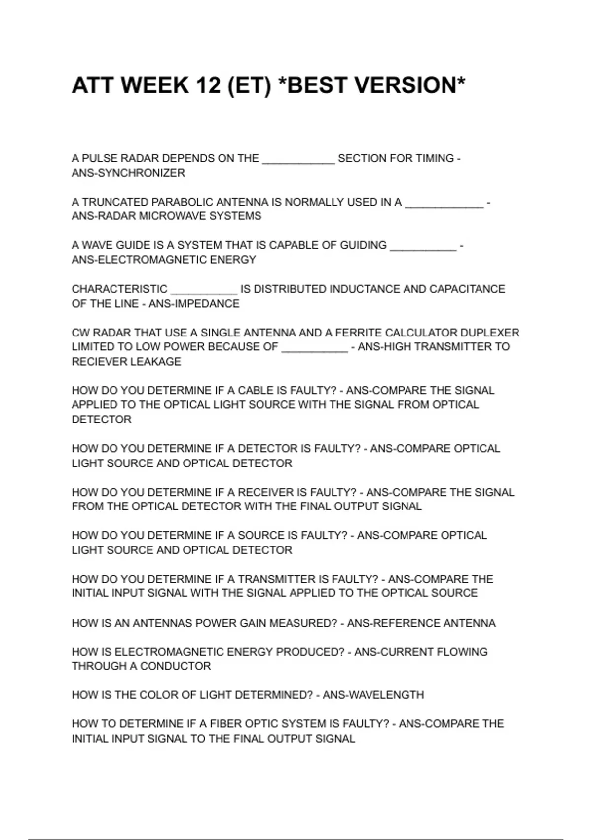 ATT WEEK 12 (ET) *BEST VERSION* NEWEST 2025/2026 ACTUAL EXAM COMPLETE QUESTIONS AND CORRECT DETAILED ANSWERS (VERIFIED ANSWERS) |ALREADY GRADED A+||BRAND NEW!!