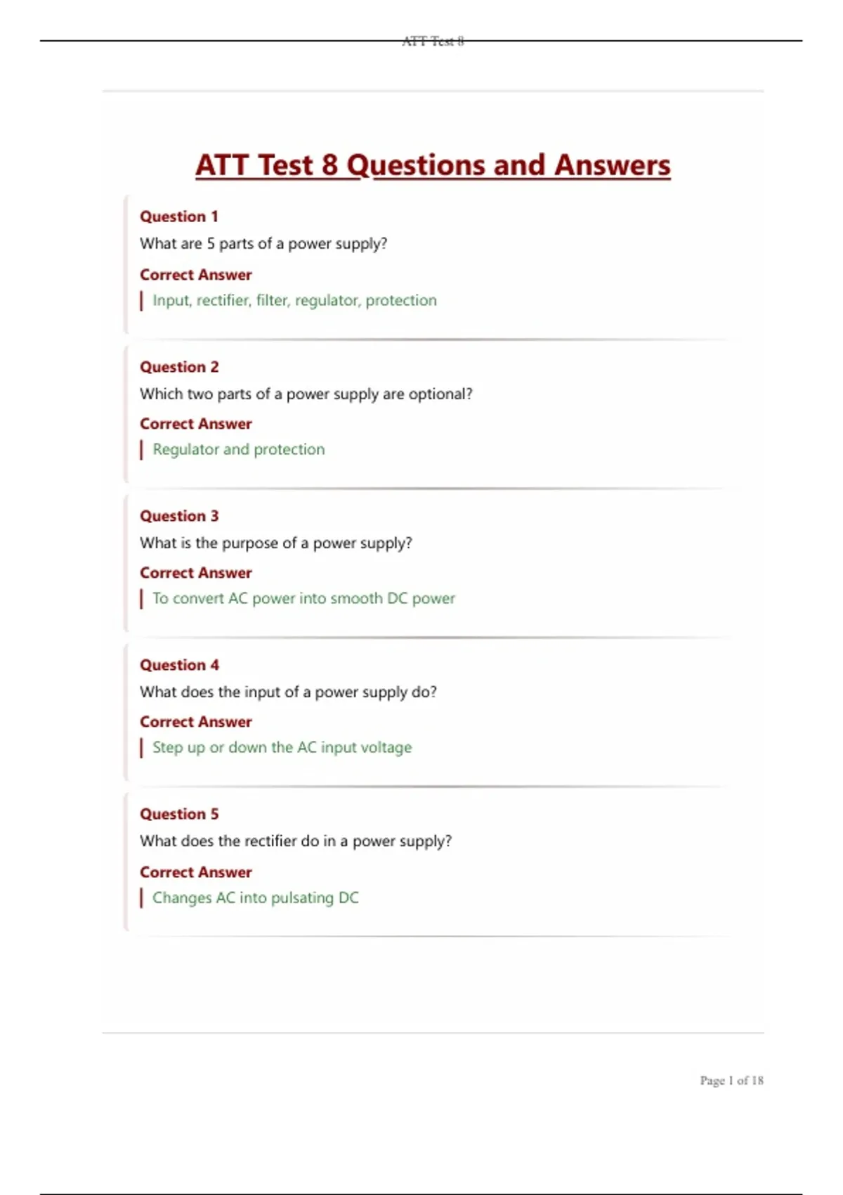 ATT Test 8 Questions and Answers