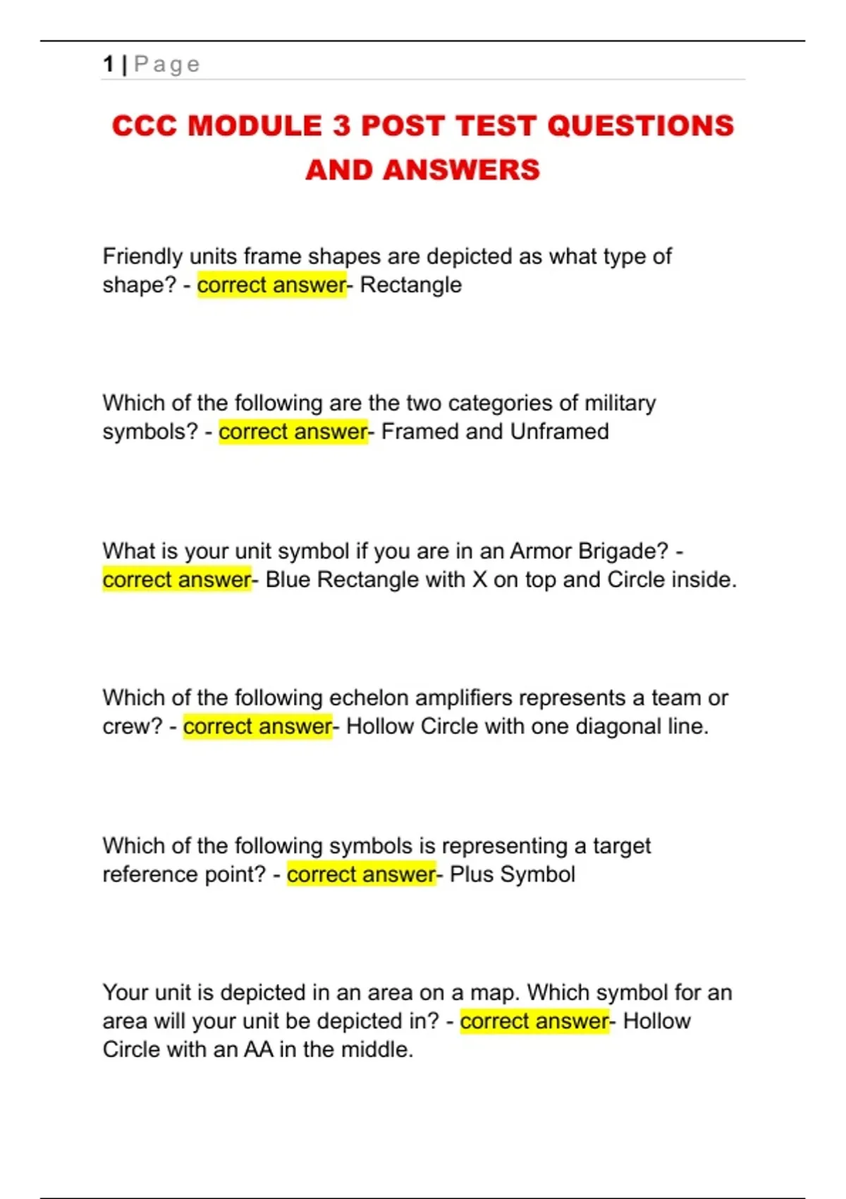 CCC MODULE 3 POST TEST QUESTIONS AND ANSWERS