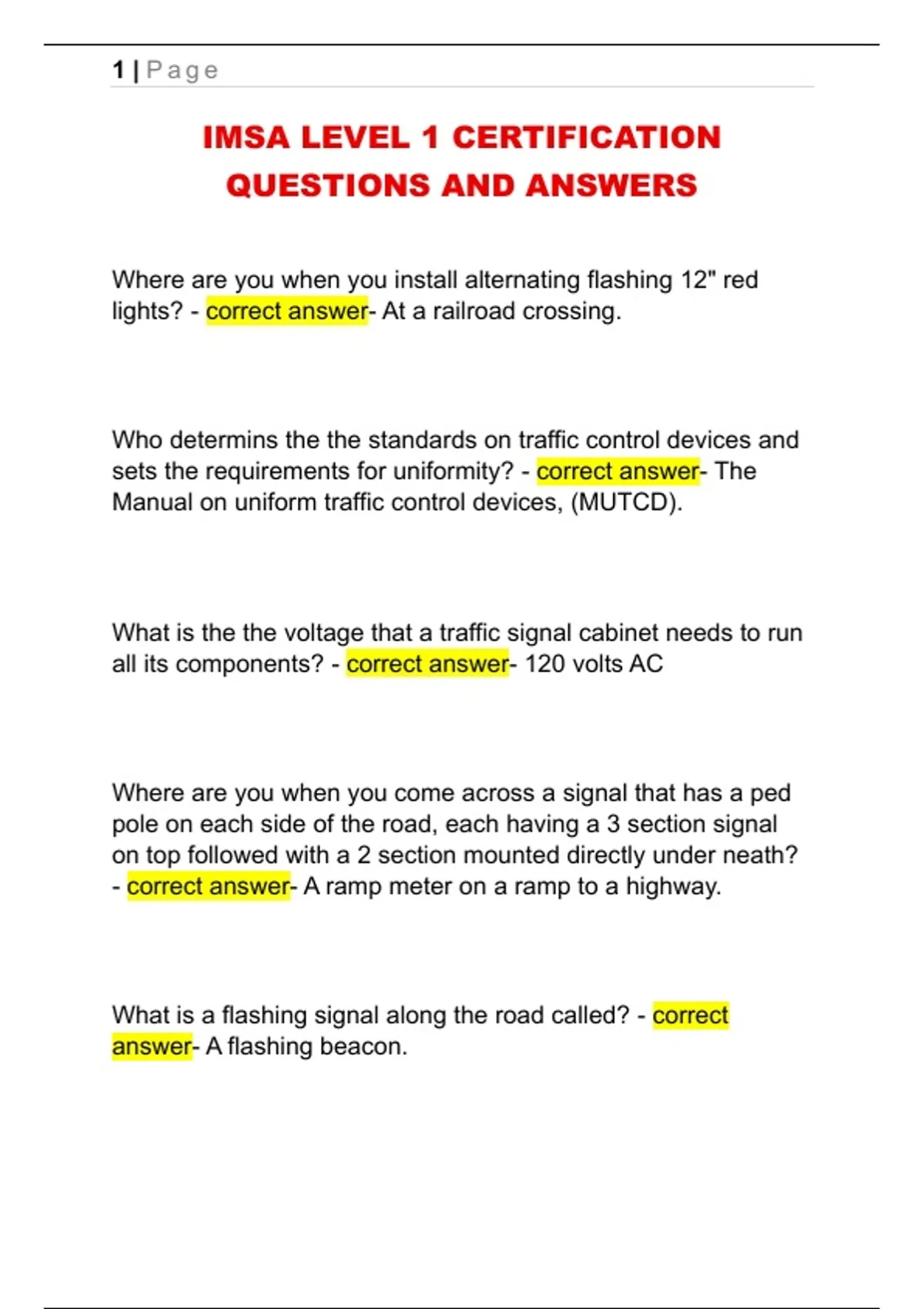 IMSA LEVEL 1 CERTIFICATION QUESTIONS AND ANSWERS