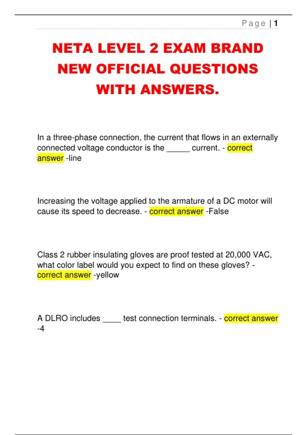 NETA LEVEL 2 EXAM BRAND NEW OFFICIAL QUESTIONS WITH ANSWERS.