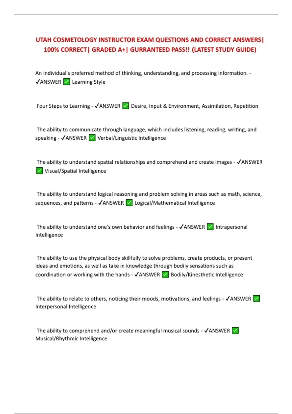 ✔ANSWER Learning Style
