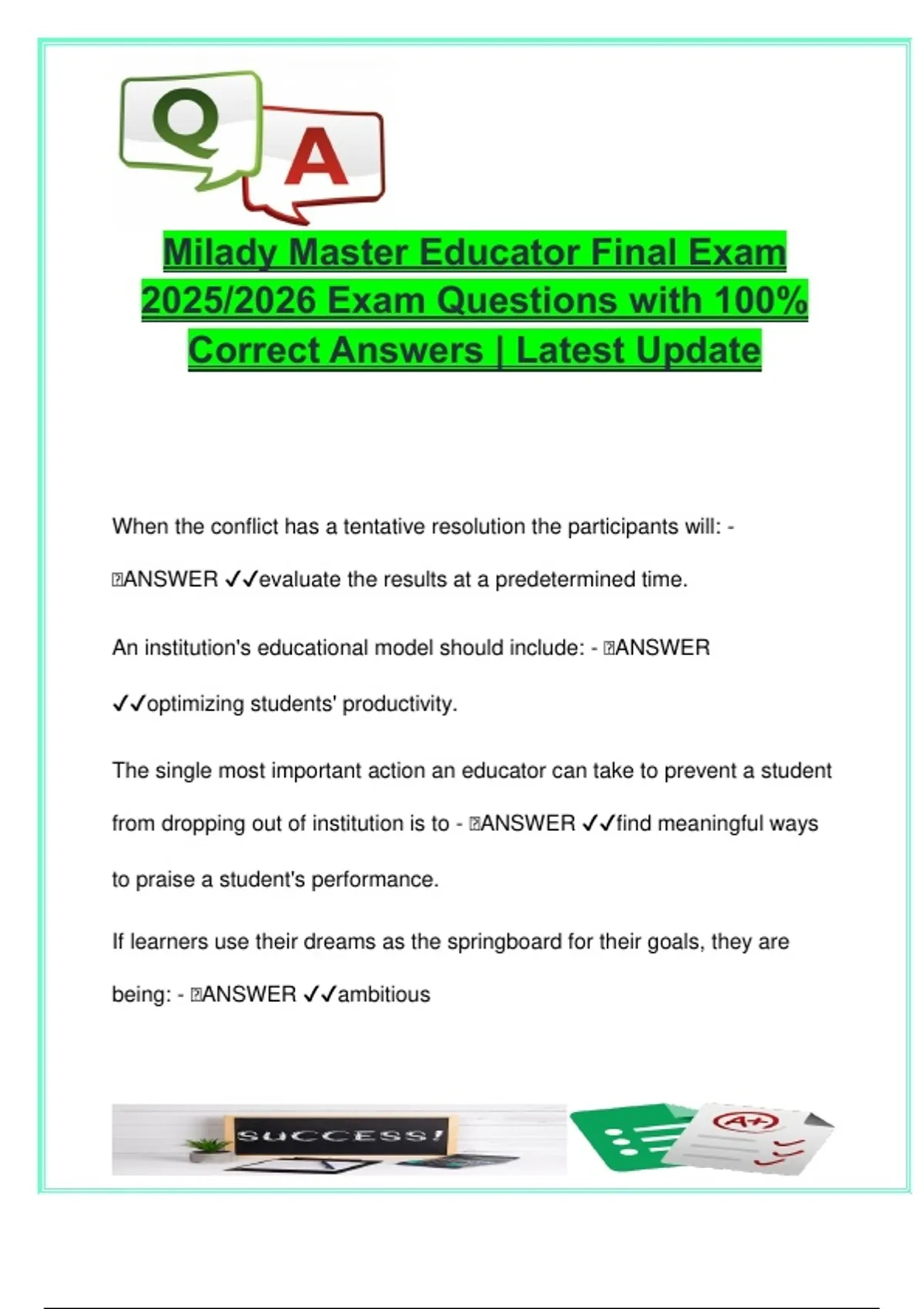 Correct Answers | Latest Update