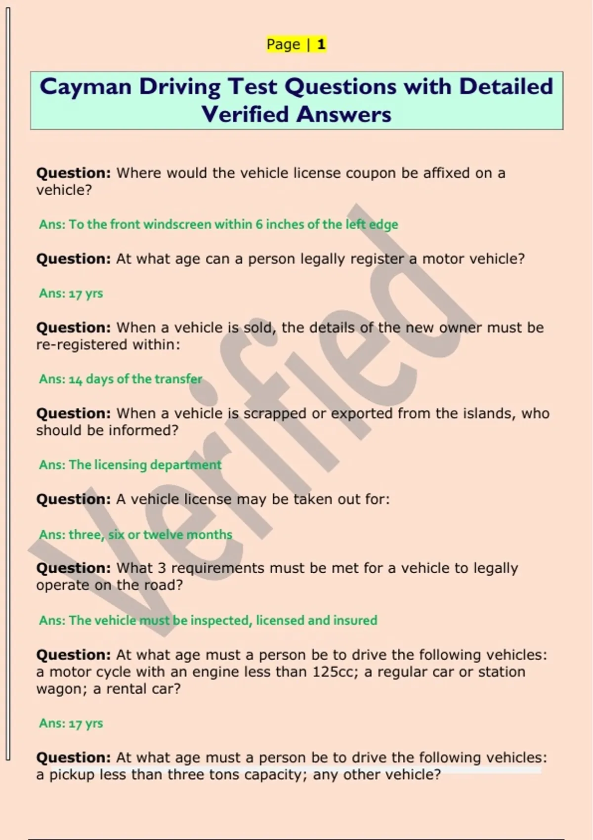 Cayman Driving Test Questions with Detailed