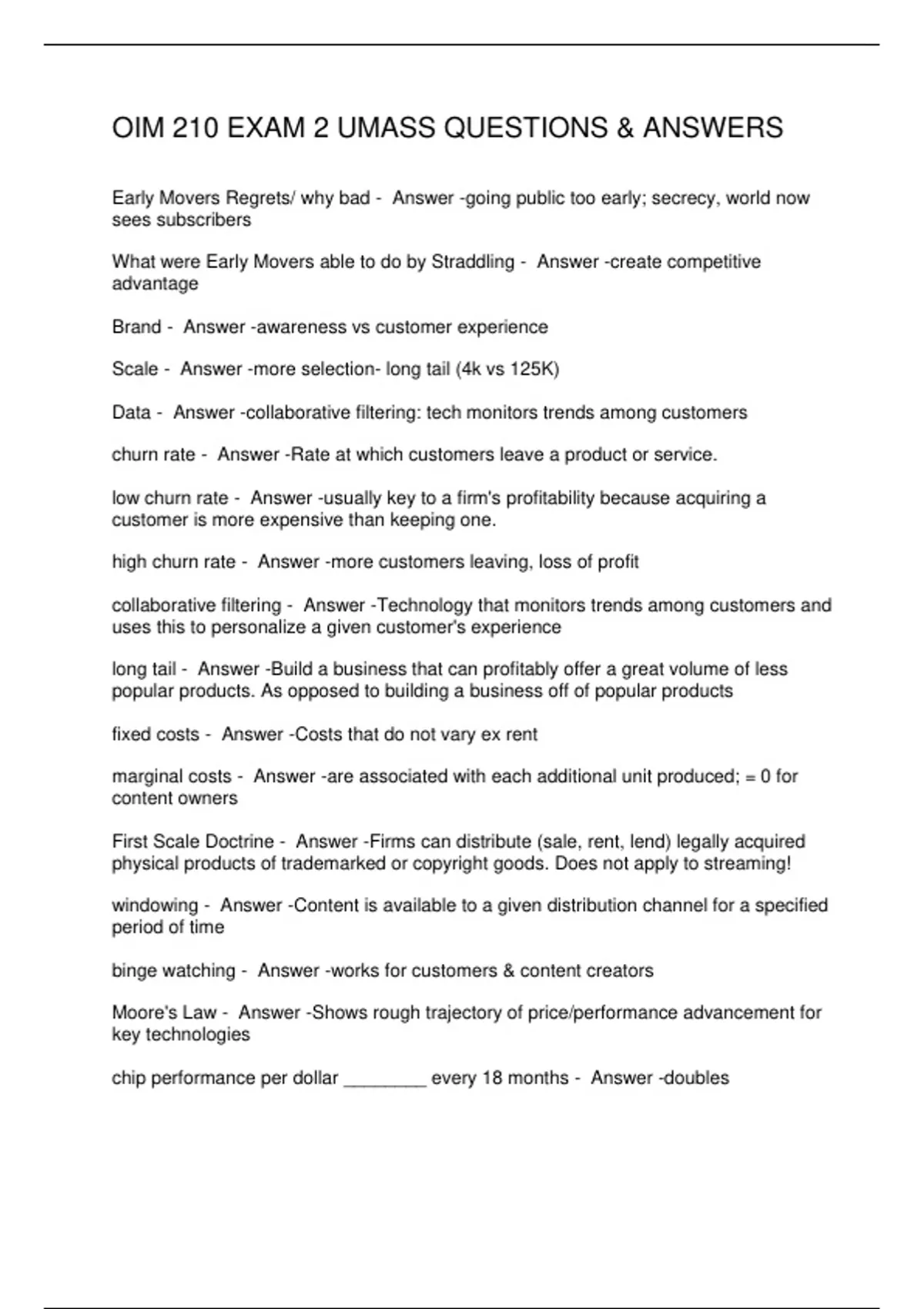 OIM 210 EXAM 2 UMASS QUESTIONS & ANSWERS