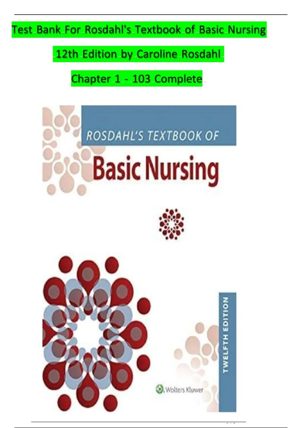 Test Bank - Rosdahl's Textbook of Basic Nursing 12th Edition by Caroline Rosdahl ; Complete Solution A Graded