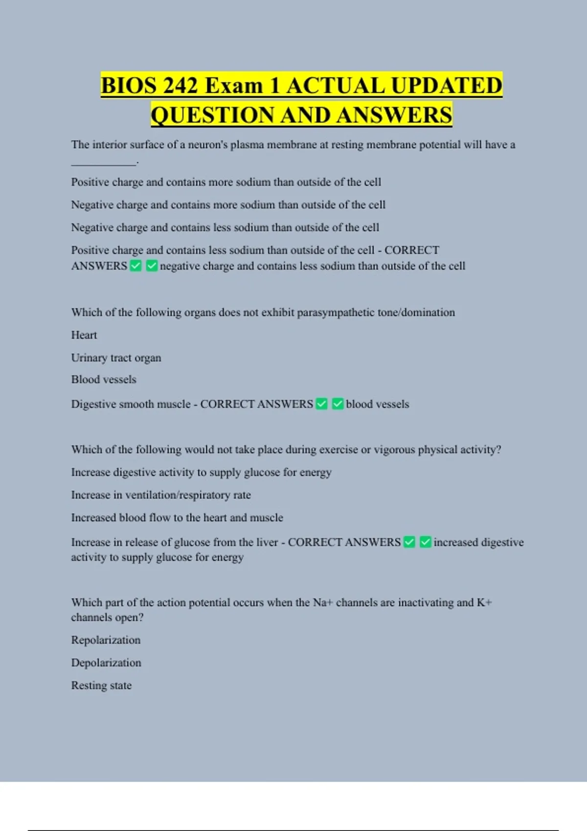 ANSWERS negative charge and contains less sodium than outside of the cell