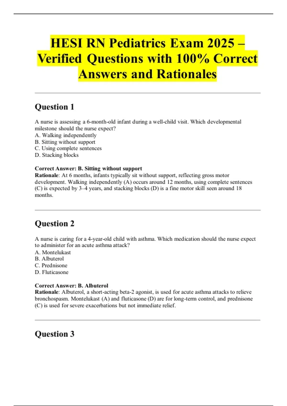 HESI RN Pediatrics Exam 2025 –