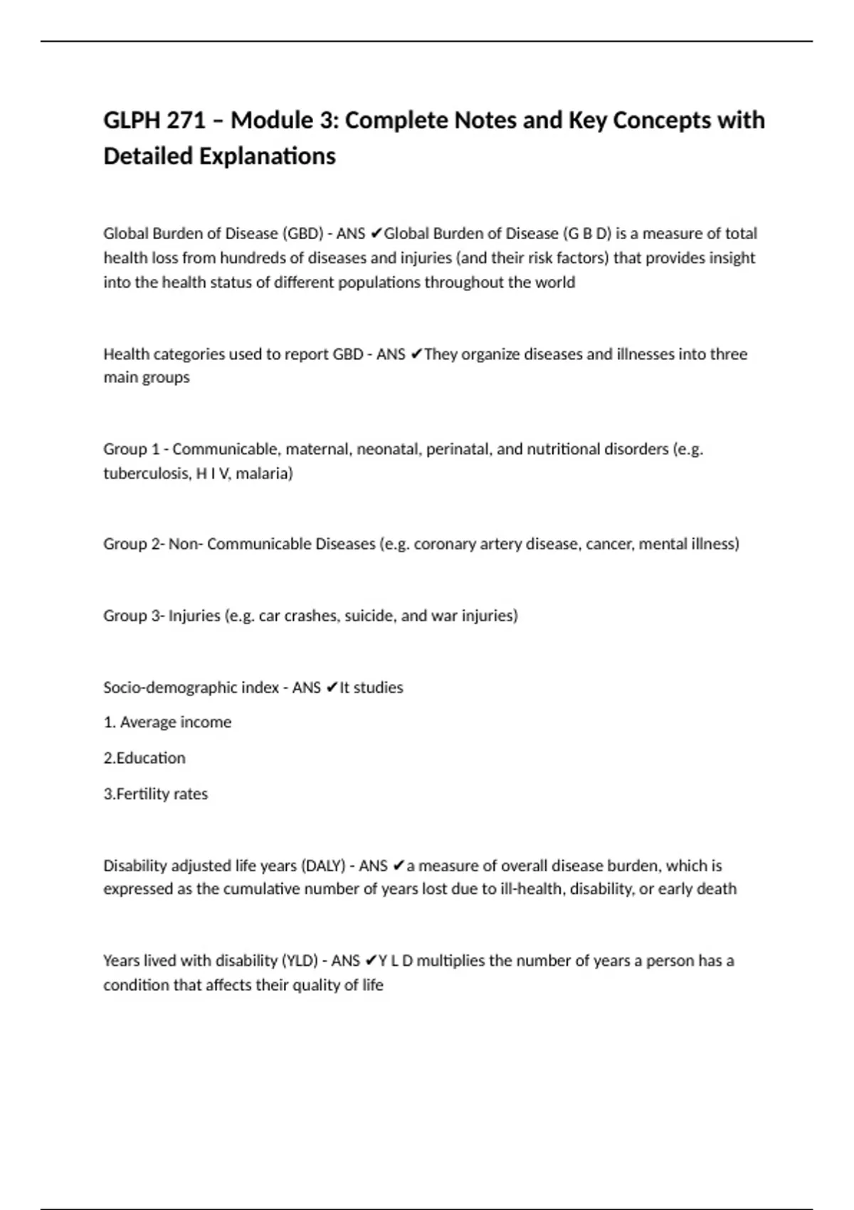 Global Burden of Disease (GBD) - ANS ✔Global Burden of Disease (G B D) is a measure of total