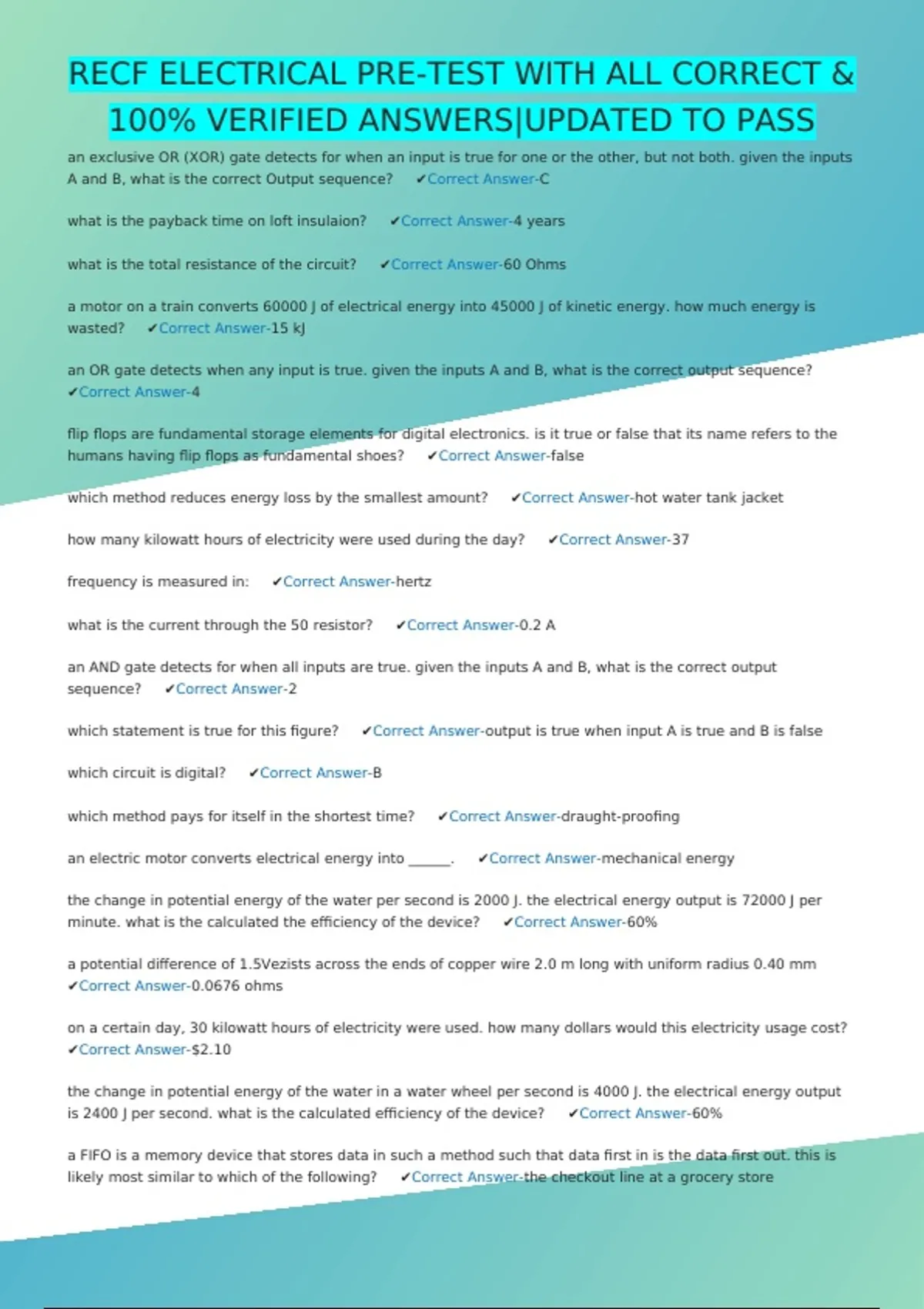 is 2400 J per second. what is the calculated efficiency of the device? ✔Correct Answer-60%