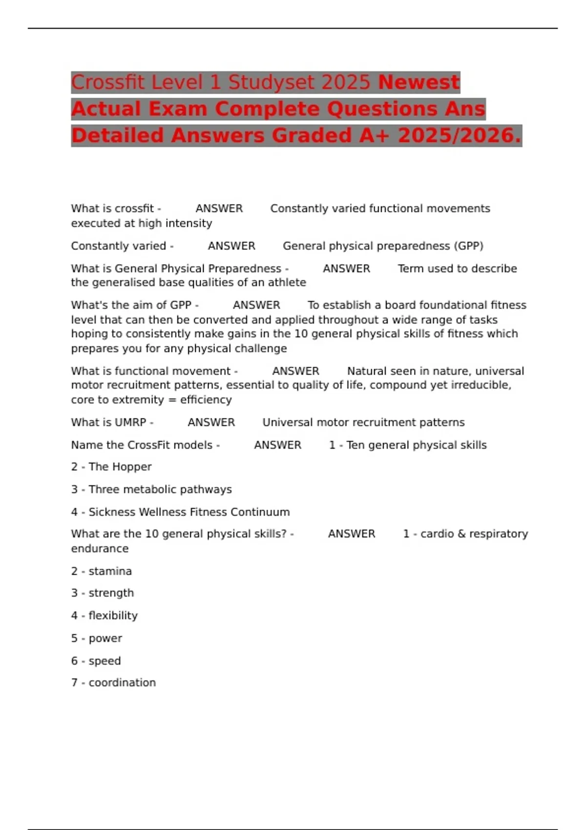 Name the CrossFit models - ANSWER 1 - Ten general physical skills