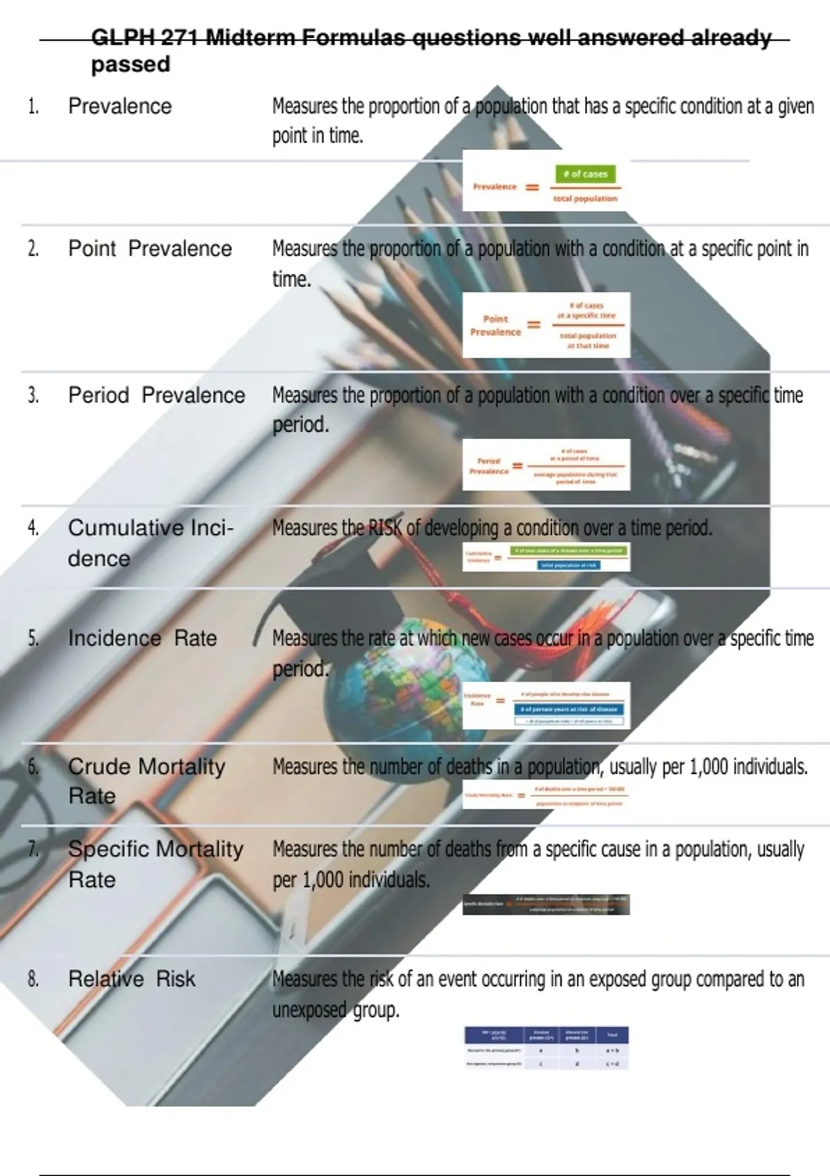 GLPH 271 Midterm Formulas questions well answered already passed