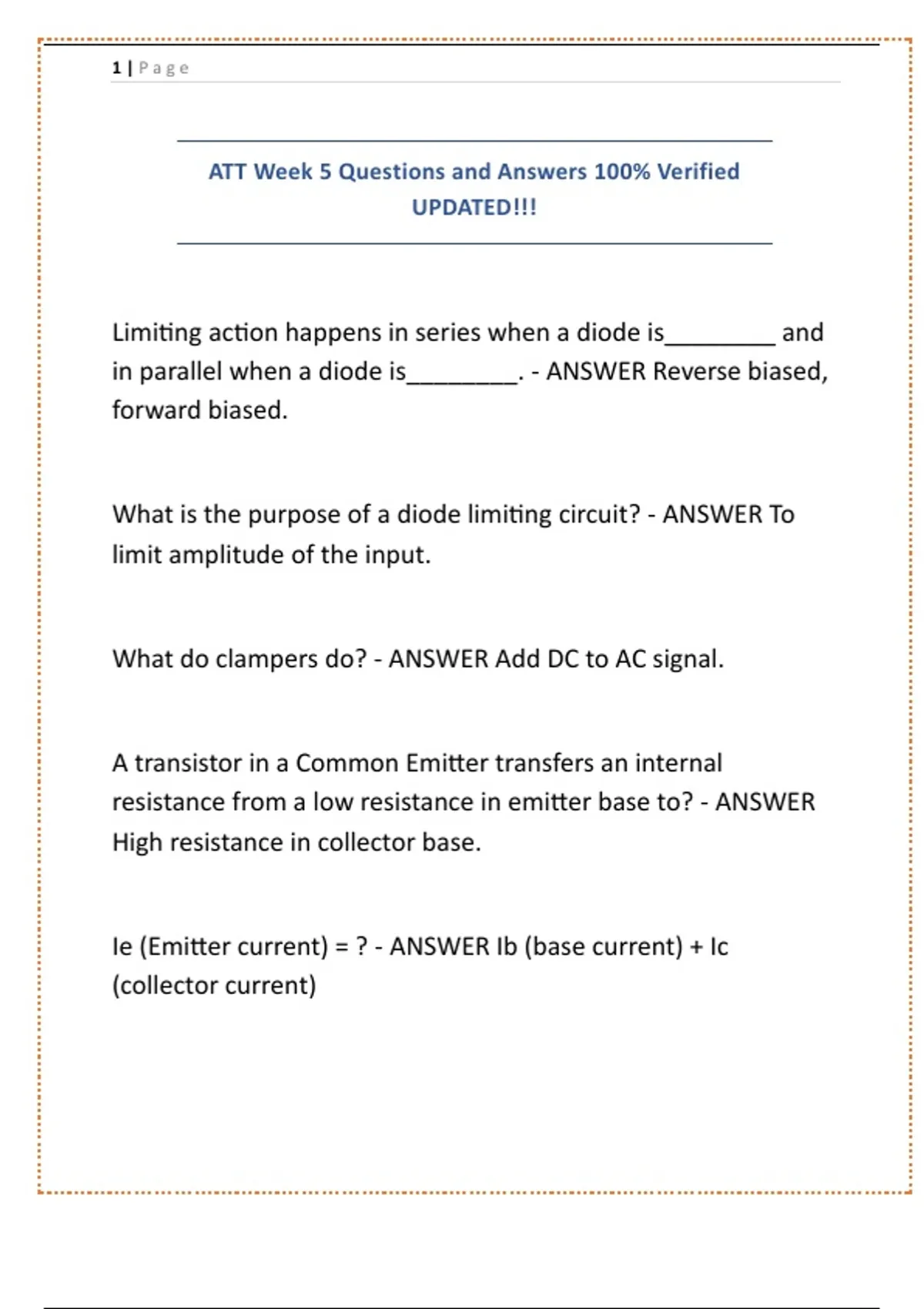 ATT Week 5 Questions and Answers 100% Verified UPDATED!!!