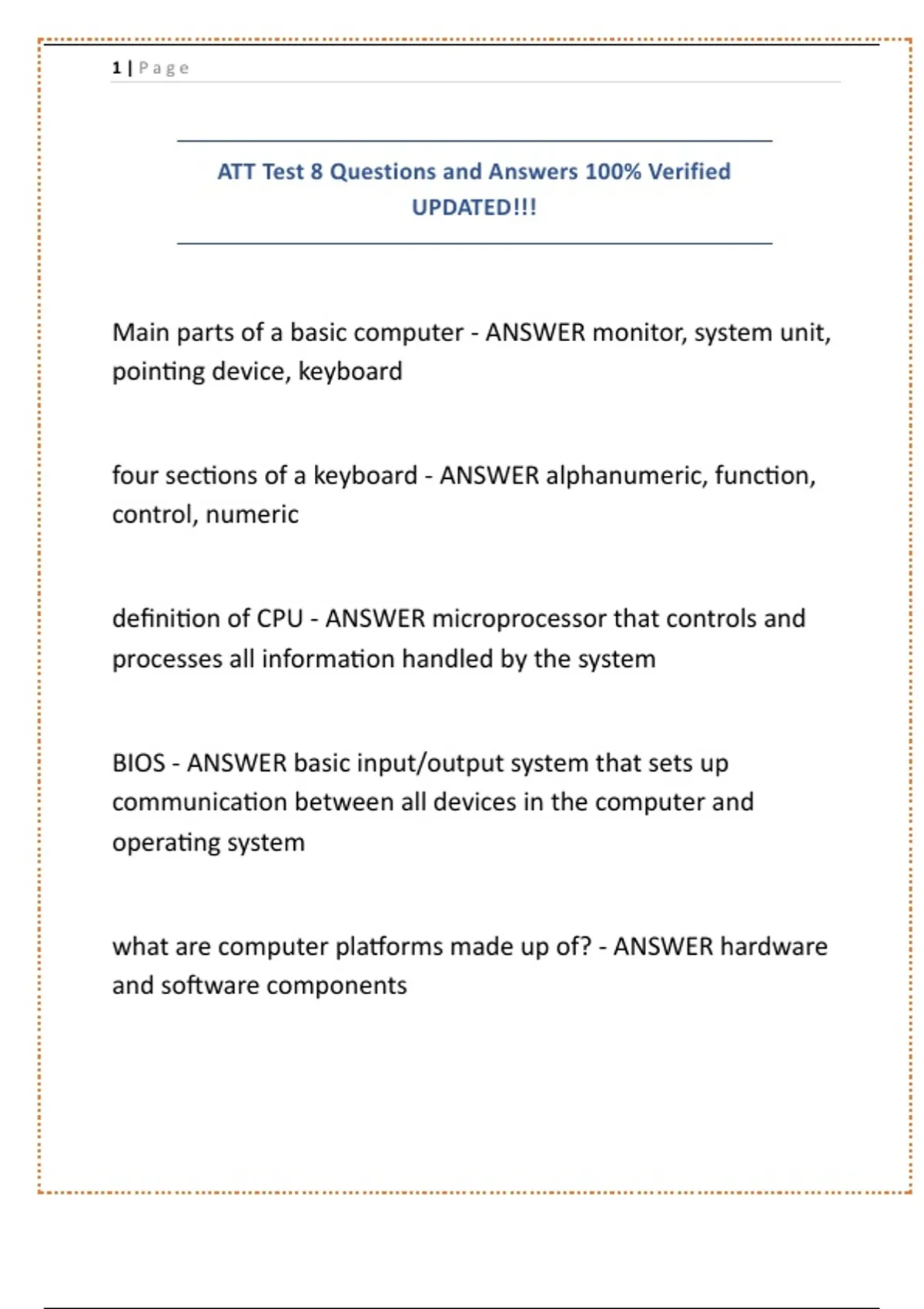 Main parts of a basic computer - ANSWER monitor, system unit,
