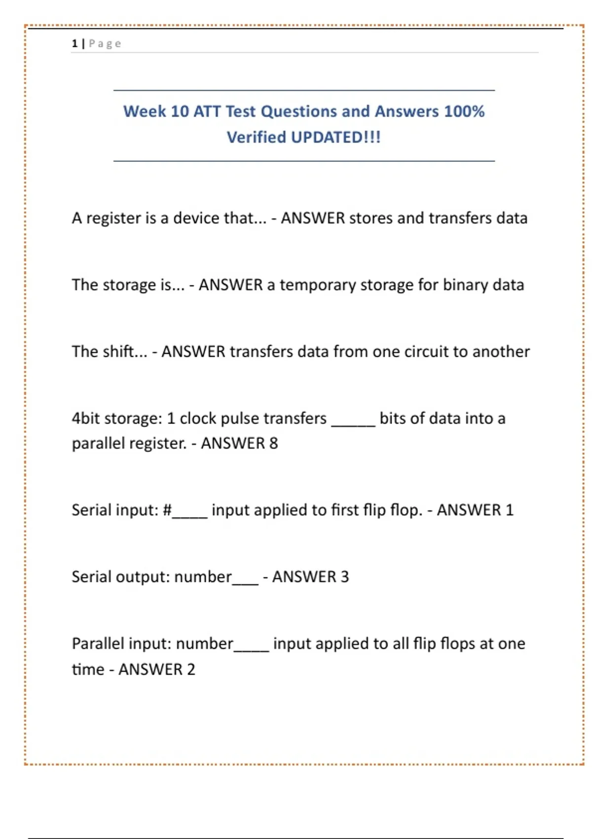 Week 10 ATT Test Questions and Answers 100%