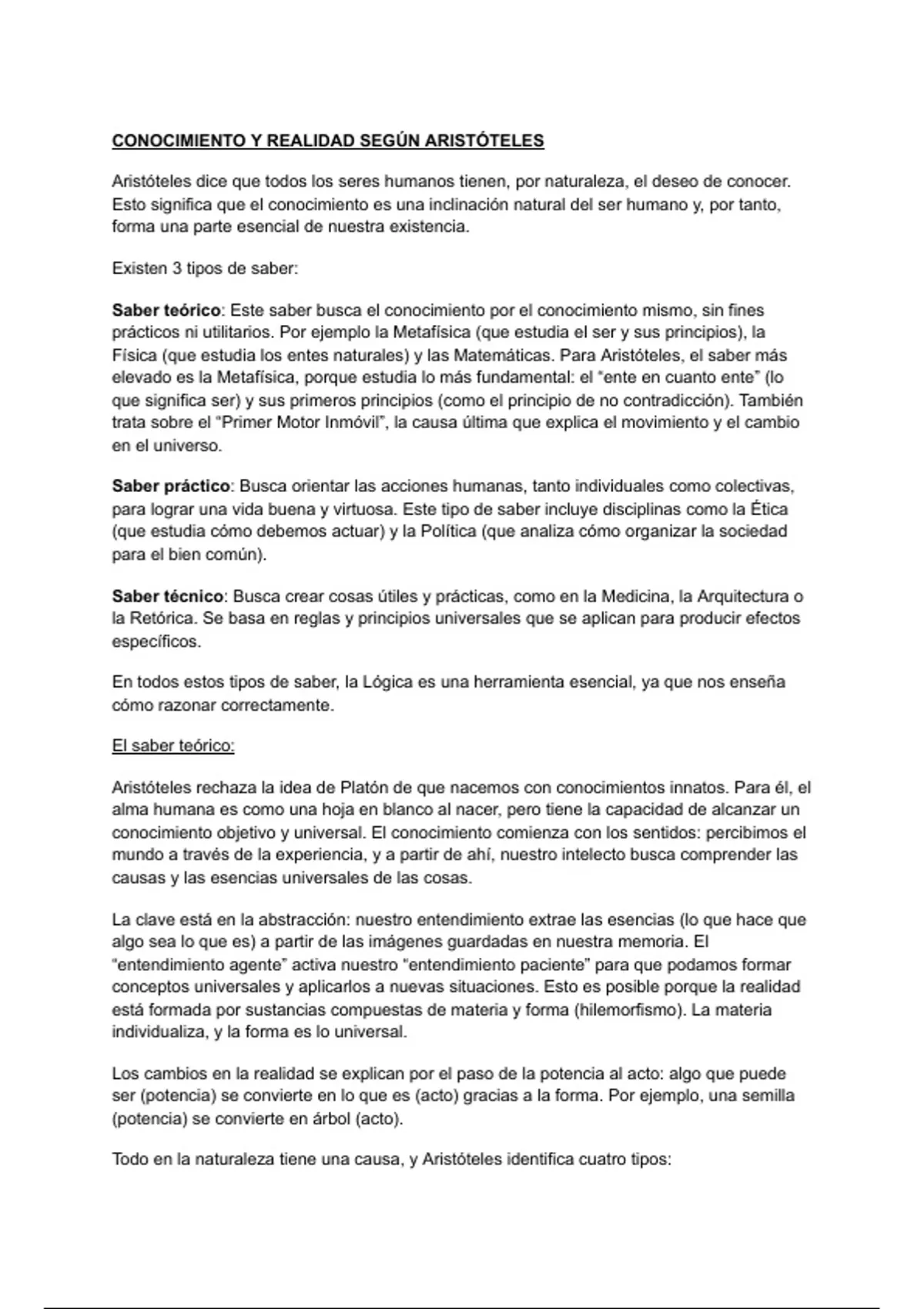 CONOCIMIENTO Y REALIDAD SEGÚN ARISTÓTELES