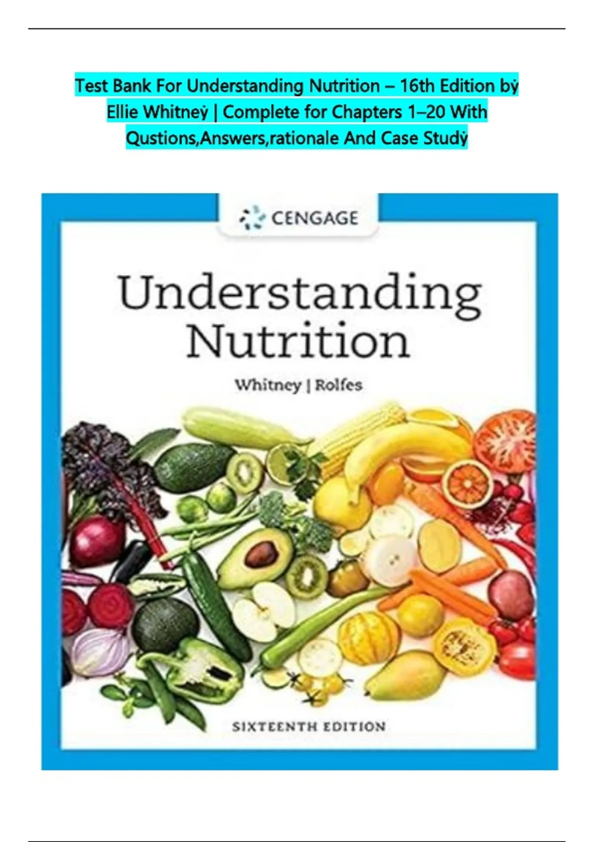 Complete Test Bank – Understanding Nutrition (16th Edition by Ellie Whitney) |Every Chapter 1–20 COVERED WITH QUESTIONS AND ANSWERS WITH RATIONALES AND CASE STUDY.