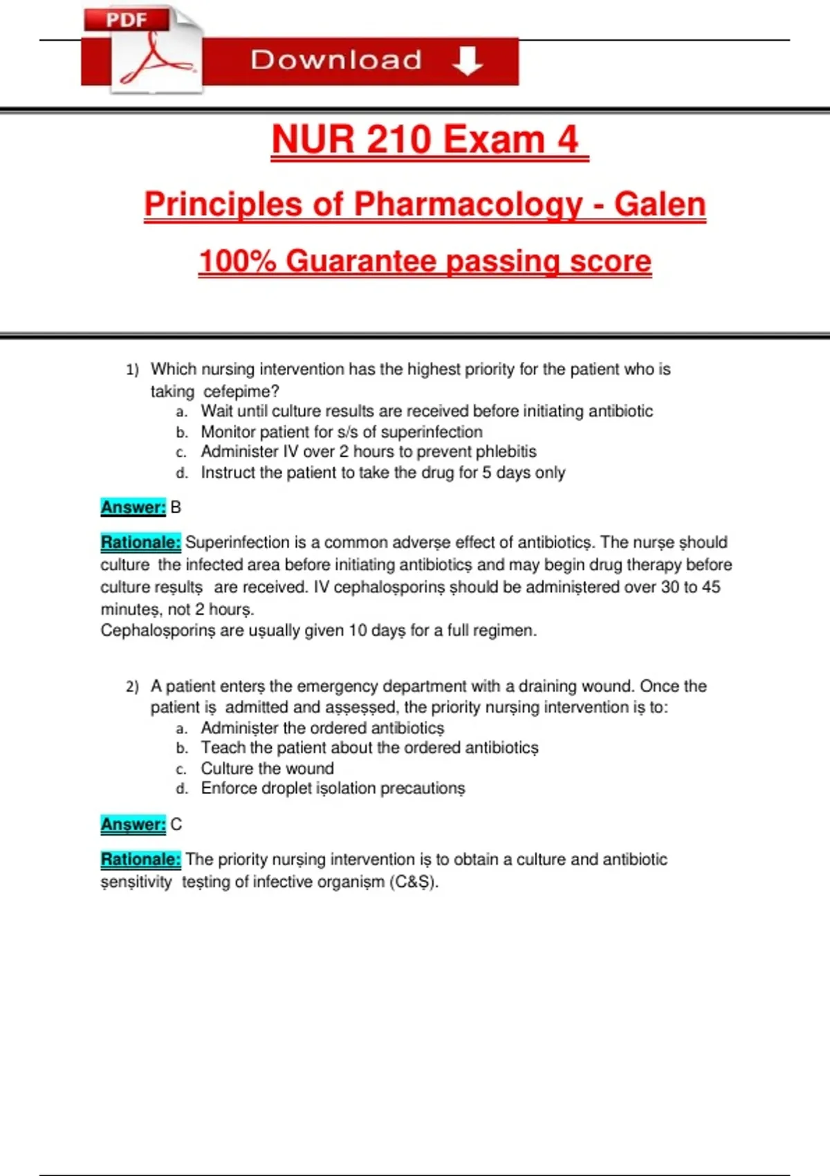NUR 210 Exam 4
