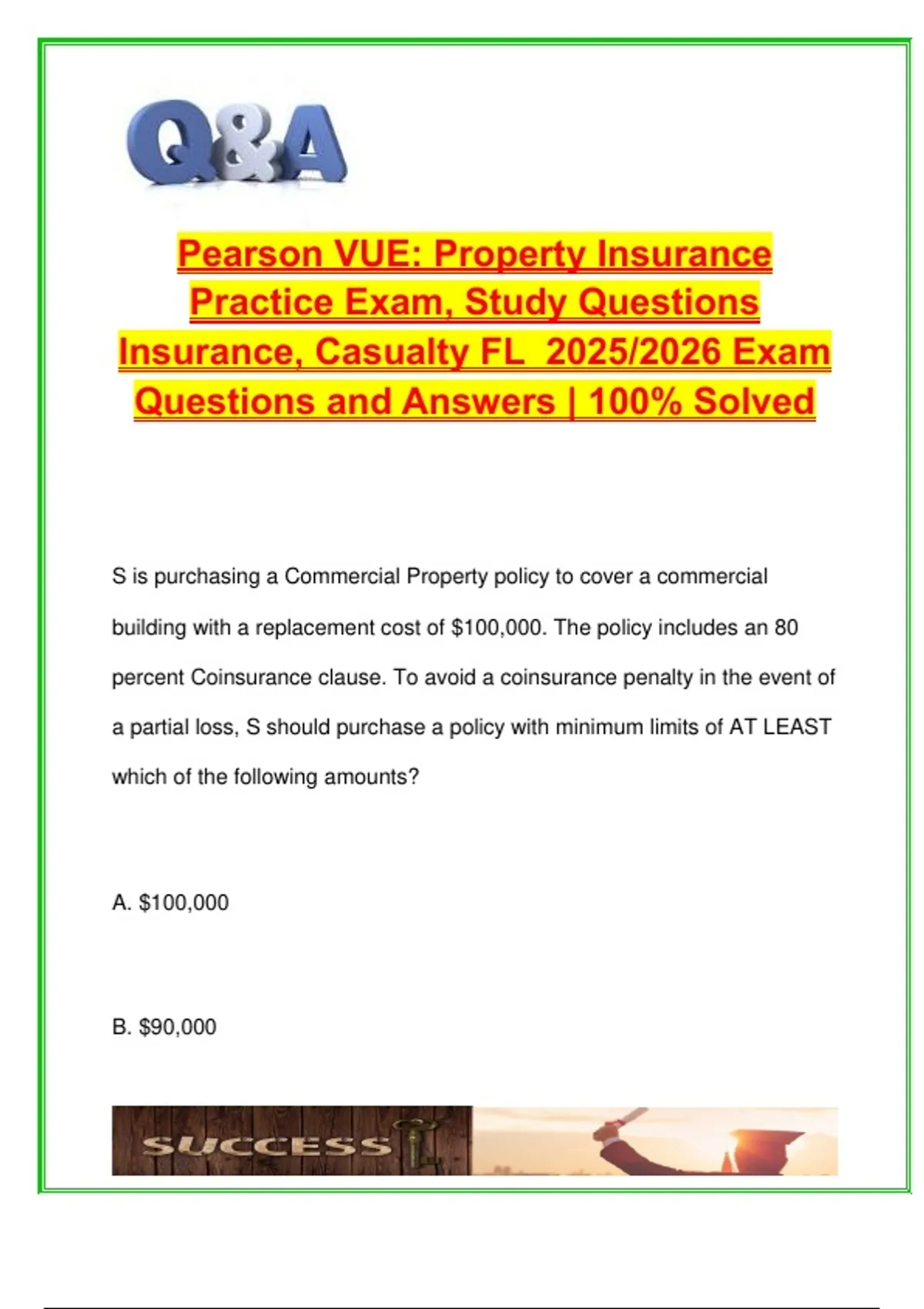 a partial loss, S should purchase a policy with minimum limits of AT LEAST