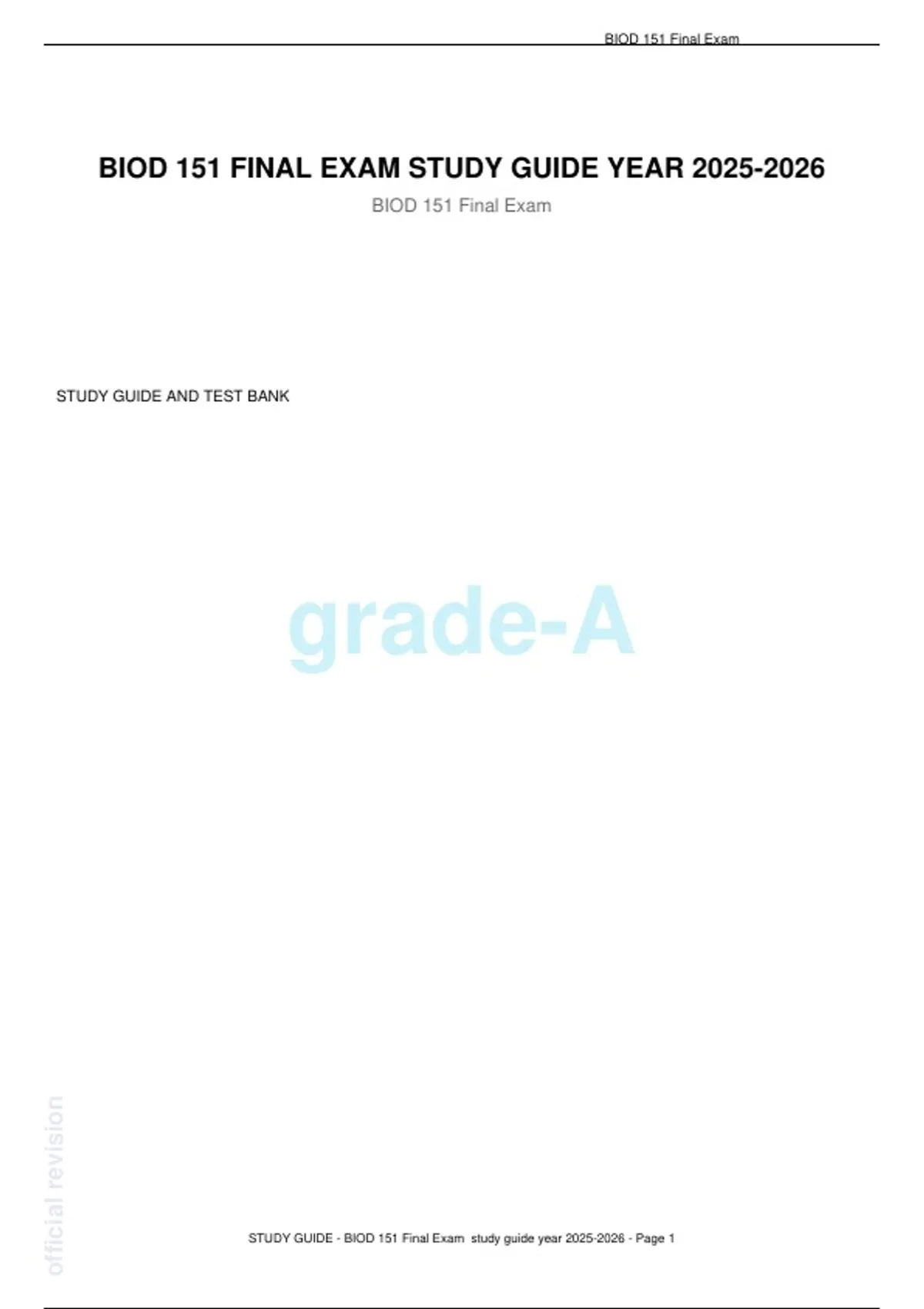 STUDY GUIDE - BIOD 151 Final Exam study guide year 2025-2026 - Page 1