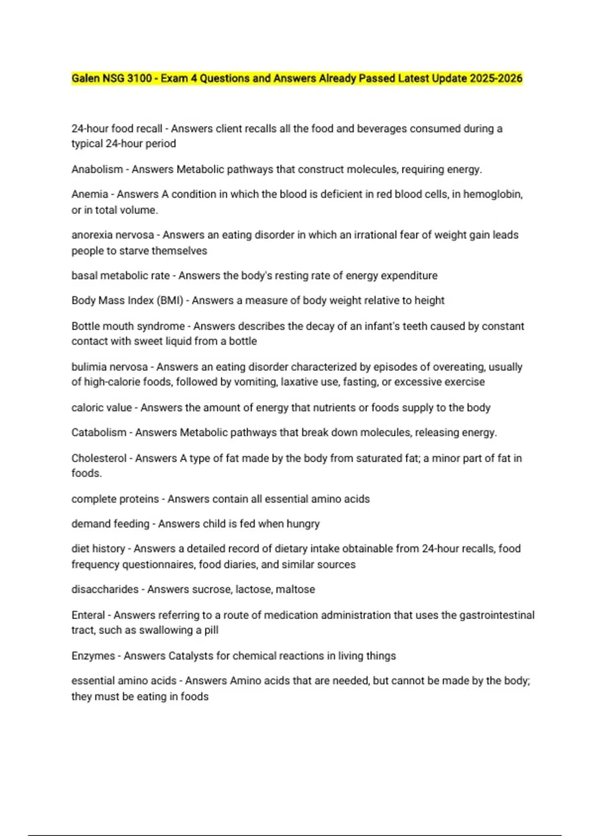 Body Mass Index (BMI) - Answers a measure of body weight relative to height