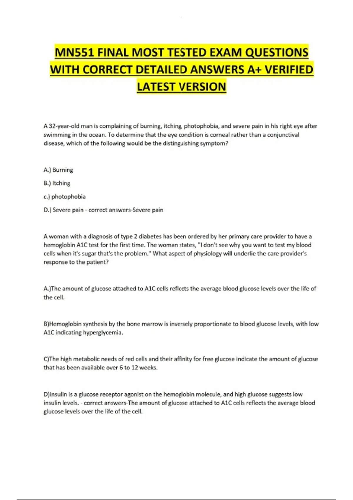 MN551 FINAL MOST TESTED EXAM QUESTIONS WITH CORRECT DETAILED ANSWERS A+ VERIFIED LATEST VERSION
