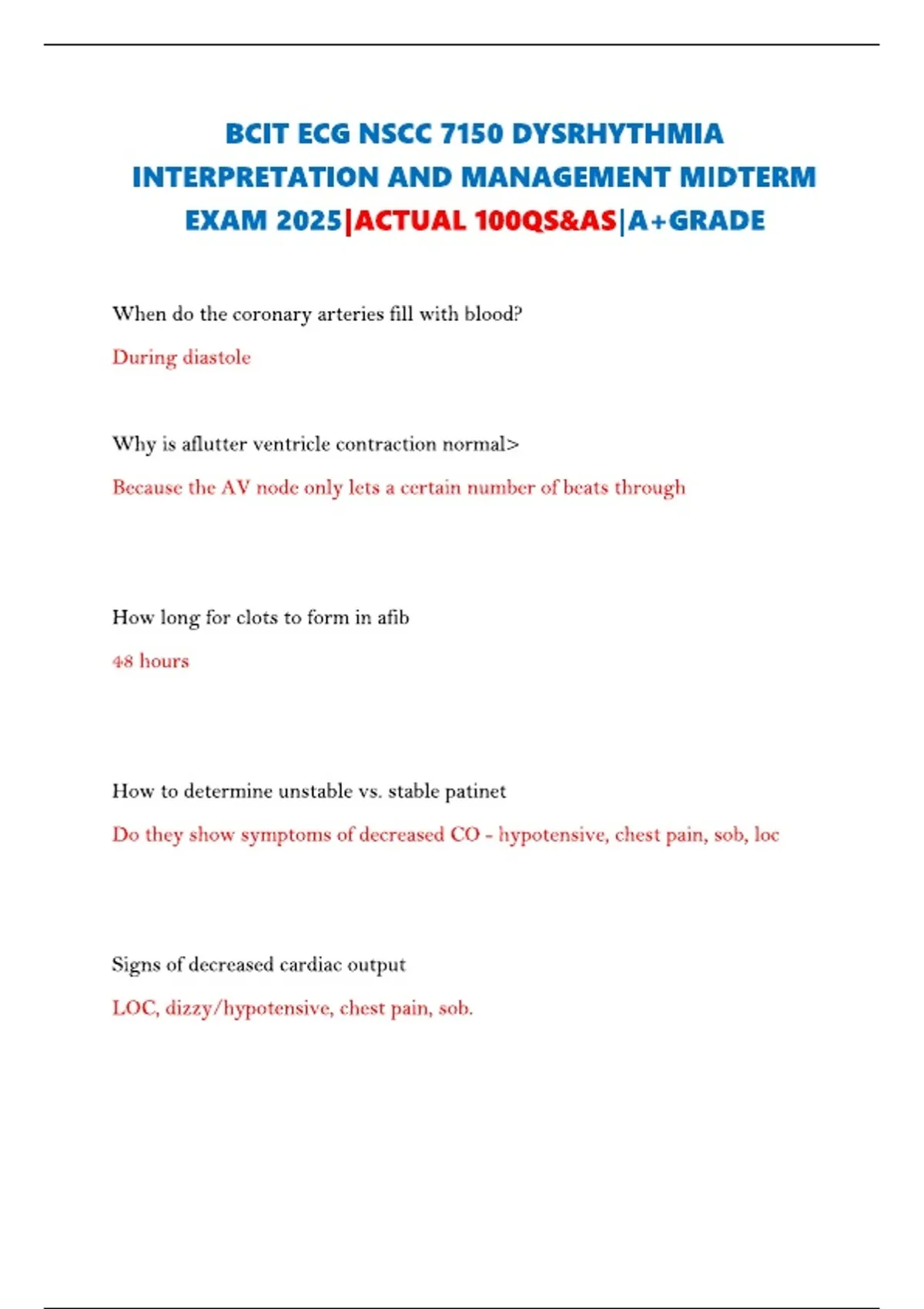 BCIT ECG NSCC 7150 DYSRHYTHMIA INTERPRETATION AND MANAGEMENT MIDTERM EXAM 2025|ACTUAL 100QS&AS|A+GRADE