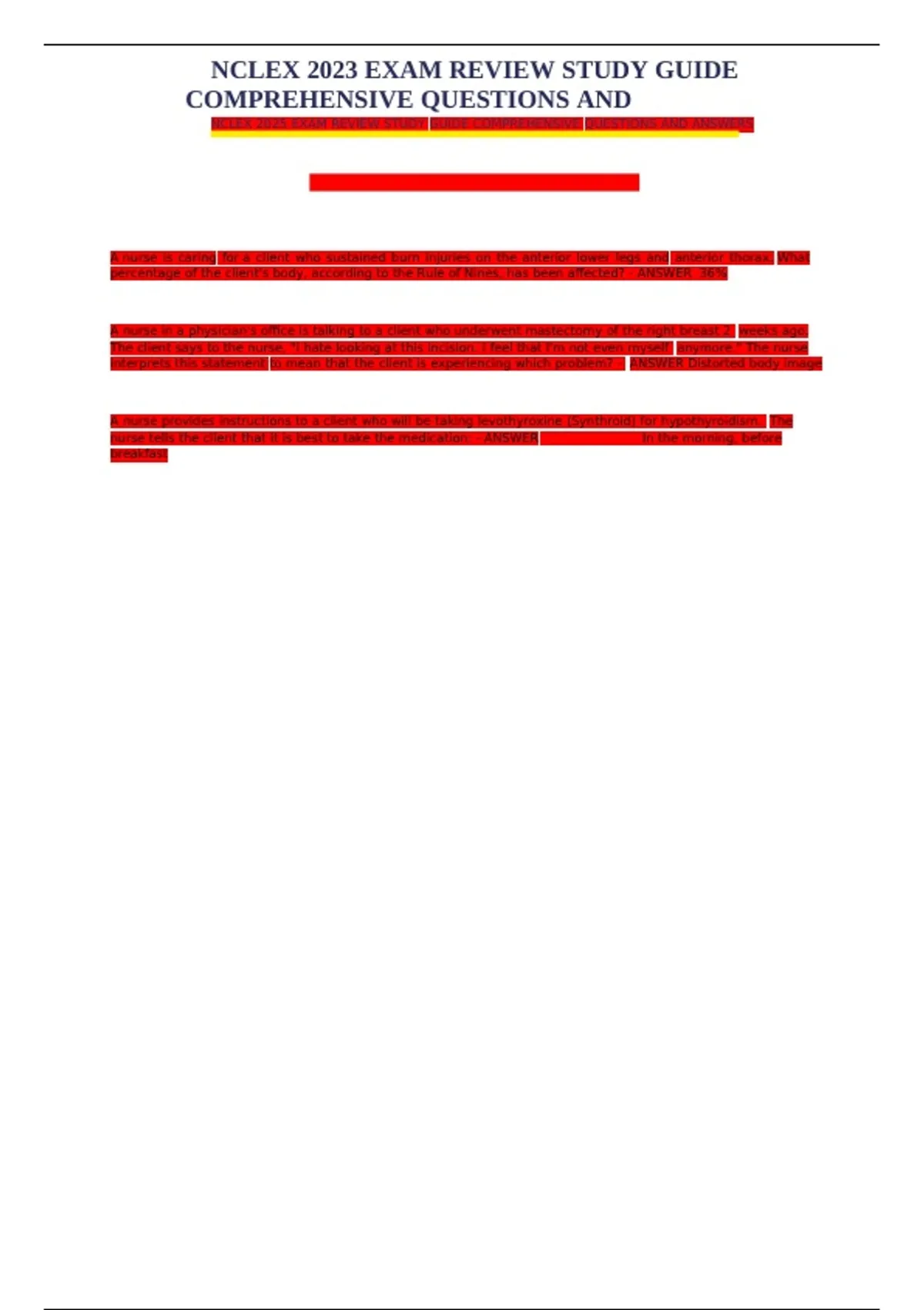 NCLEX 2025 EXAM REVIEW STUDY GUIDE COMPREHENSIVE QUESTIONS AND ANSWERS