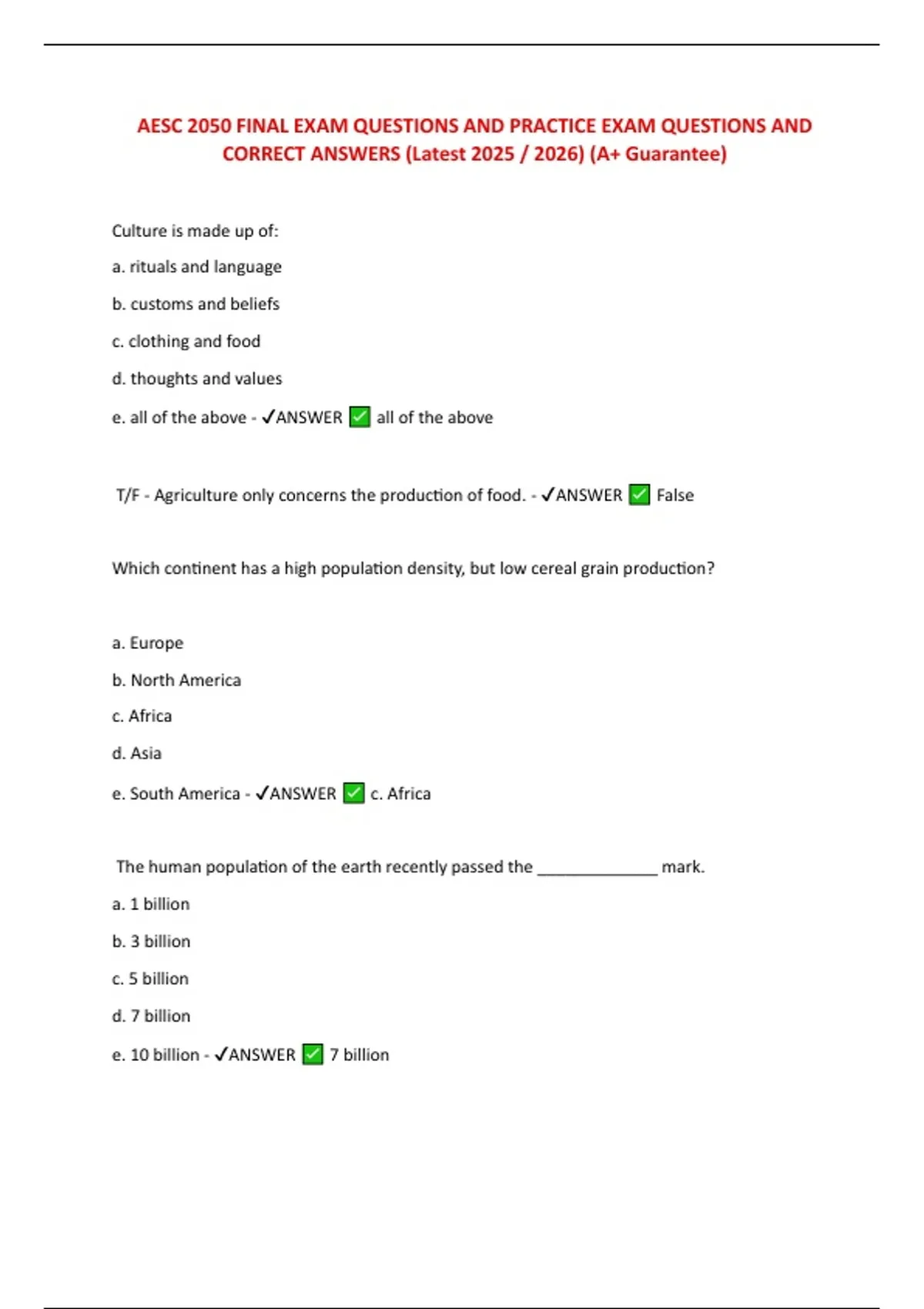 e. barley, rice, what - ✔ANSWER a. corn, rice, wheat