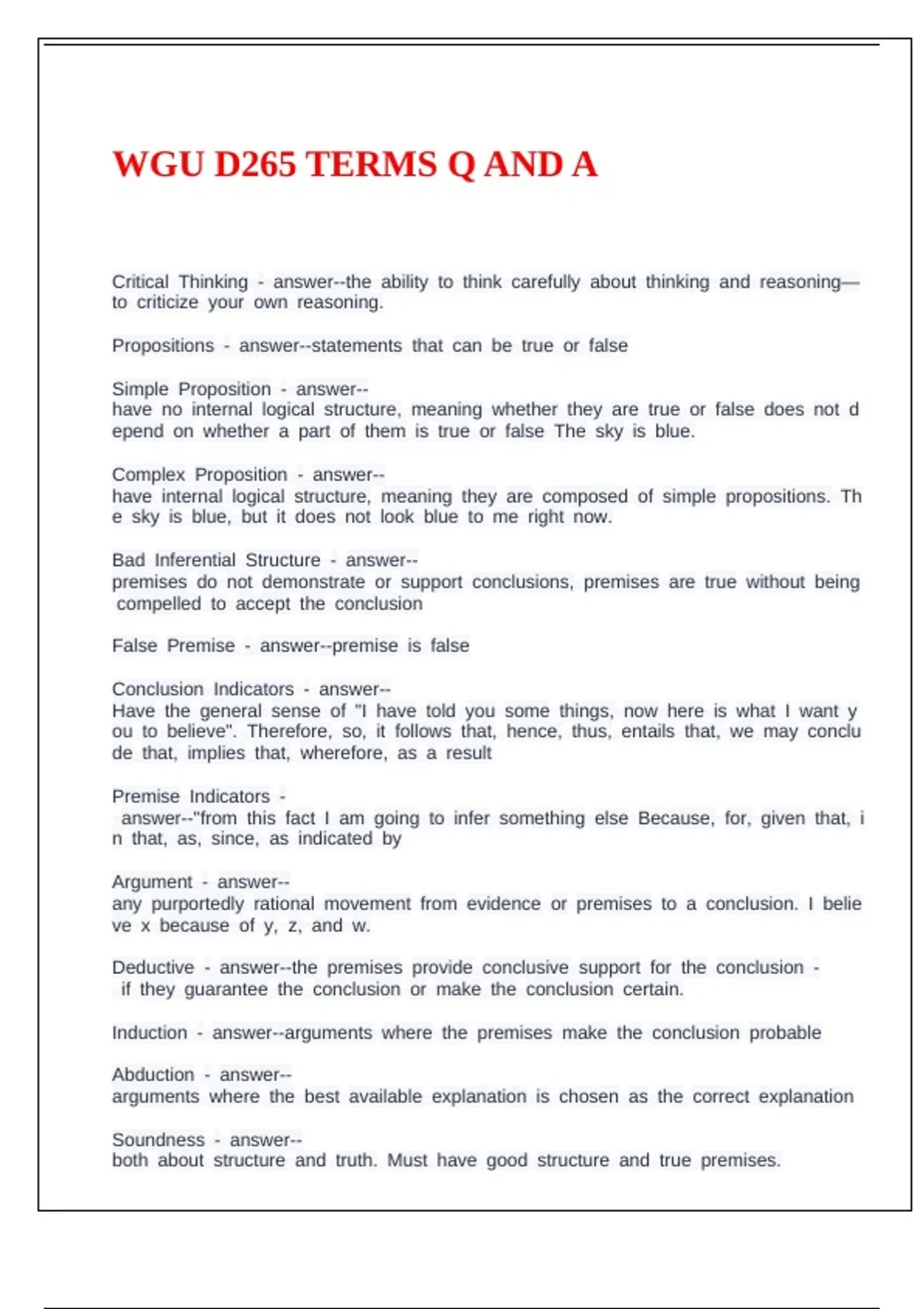 WGU D265 CRITICAL THINKING REASON AND EVIDENCE OBJ