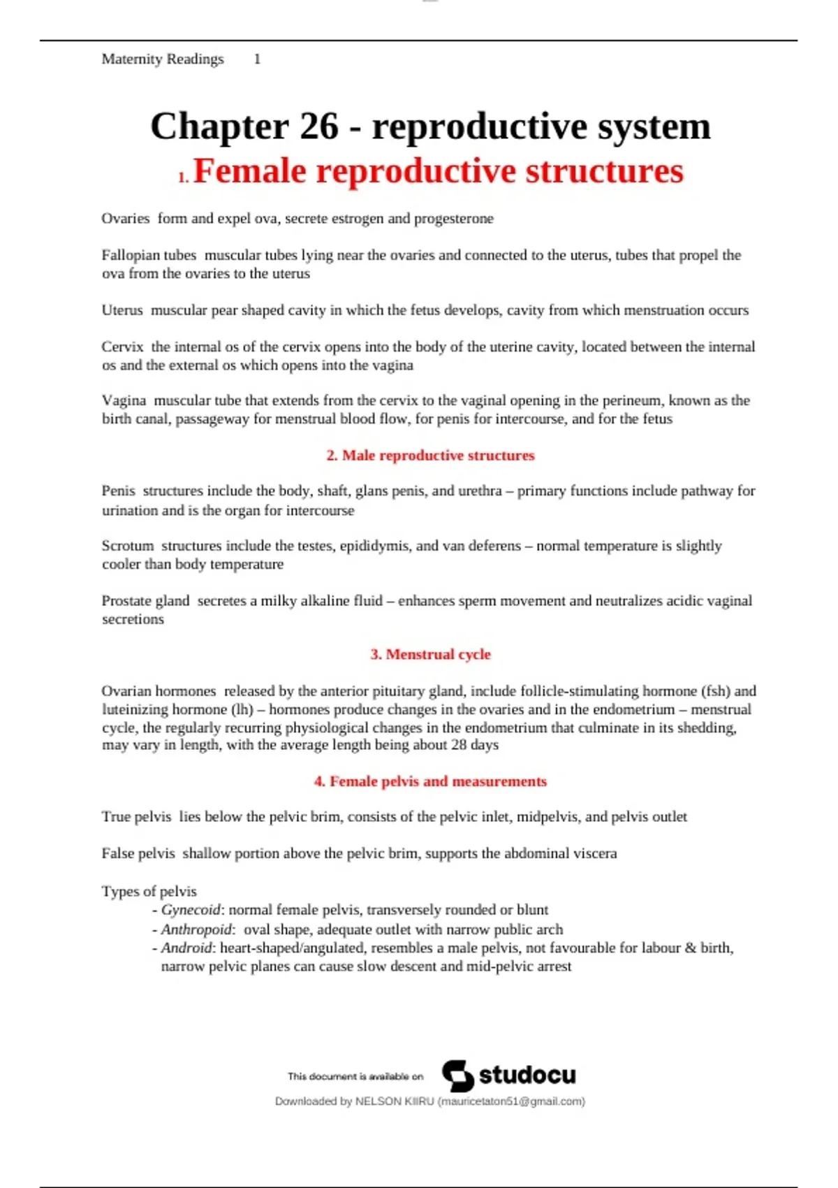 Chapter 26 - Reproductive System 1. Female Reprodu