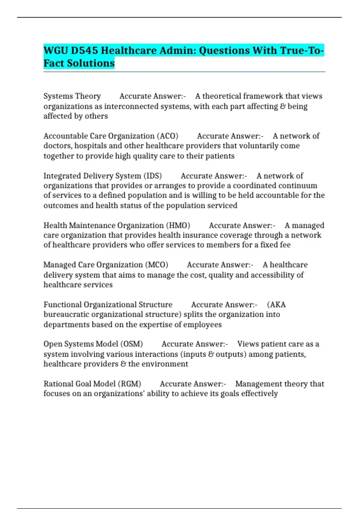Managed Care Organization (MCO) Accurate Answer:- A healthcare