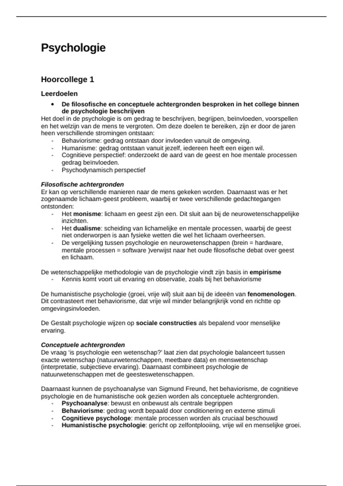 - Humanistische psychologie: gericht op zelfontplooiing, vrije wil en menselijke groei.